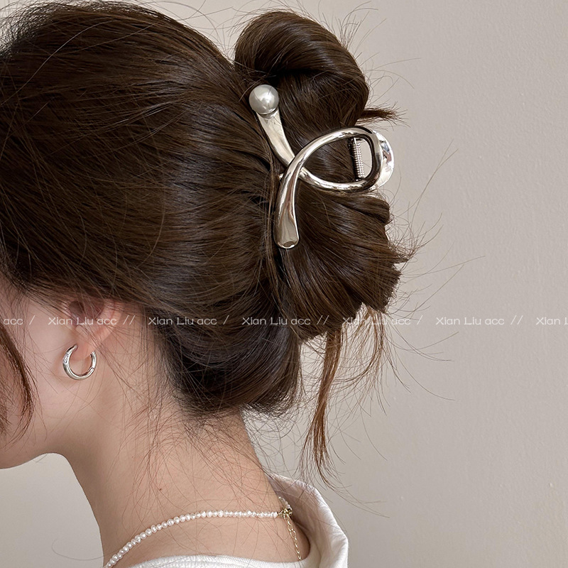 金属交叉珍珠抓夹女新款高级感发夹后脑勺中号鲨鱼夹盘发头饰