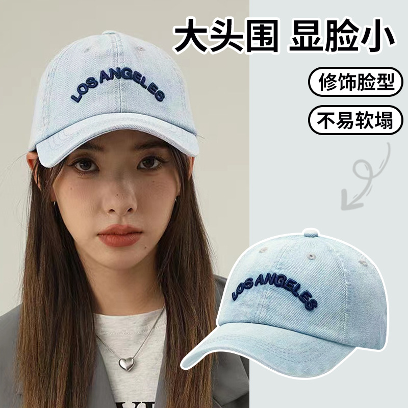 牛仔棒球帽女新款夏宽帽檐显脸小太阳帽软顶防晒遮阳鸭舌帽子