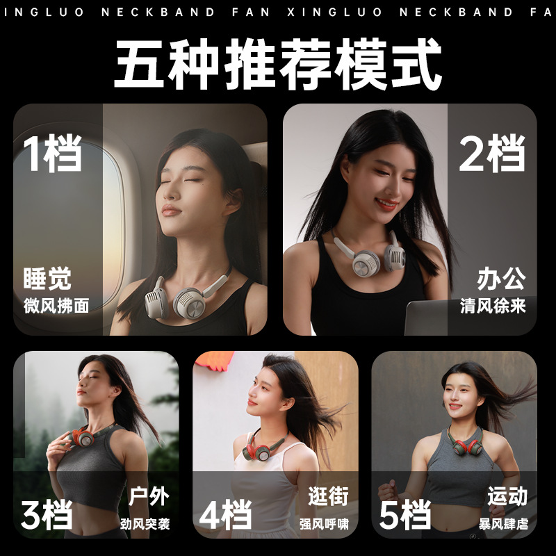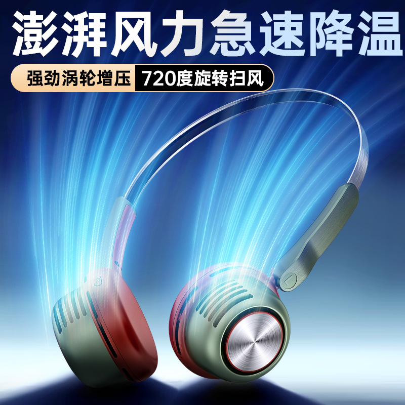新款挂脖风扇大风力便携式USB充电款无叶静音户外家用超凉爽