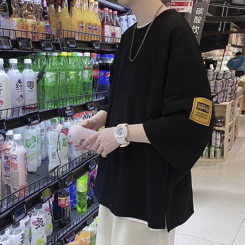 中袖七分袖男T恤夏季潮牌潮流宽松大码半袖体恤重磅短袖冰丝衣服
