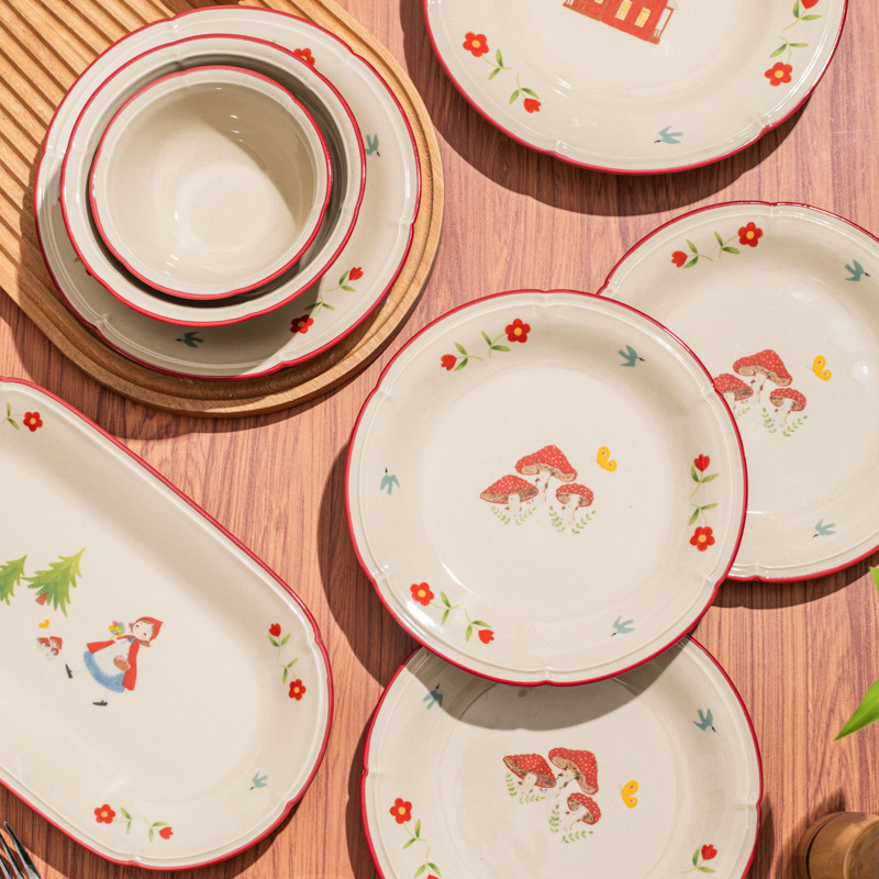 小红帽卡通碗盘釉下彩餐具特别好看的米饭碗可爱陶瓷碗家用菜盘子
