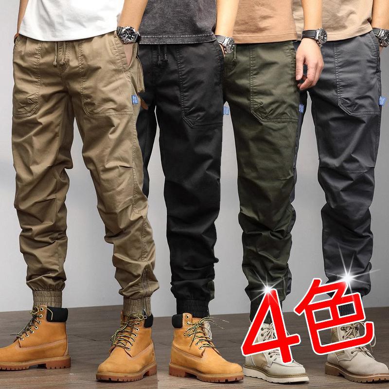 春夏季工装裤男生百搭潮牌风束脚裤休闲弹力哈伦裤宽松运动九分裤