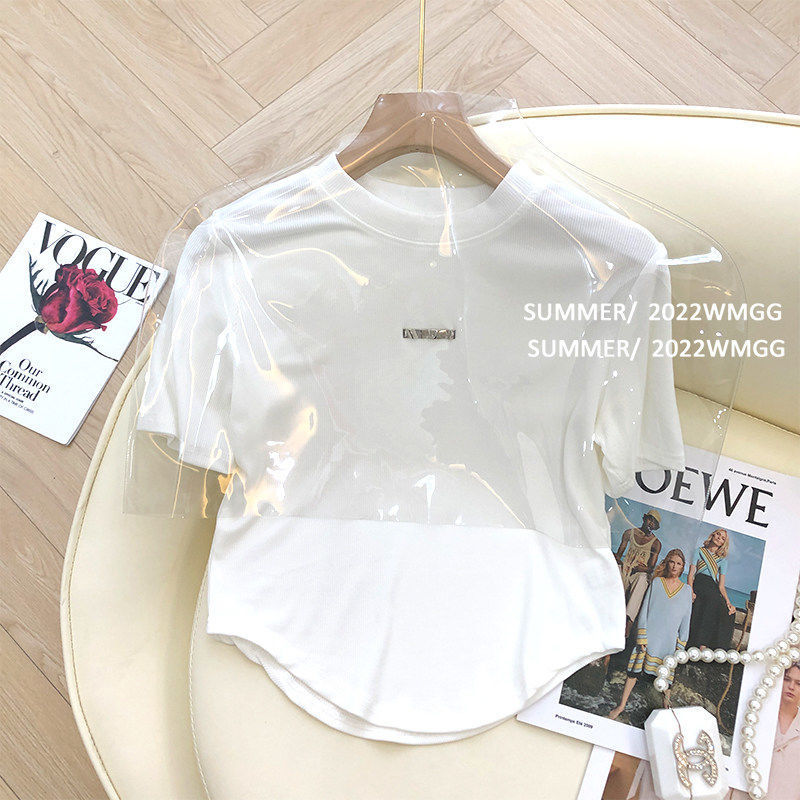 白色短袖t恤女夏季韩版设计感小众宽松显瘦百搭纯色学生贴标上衣