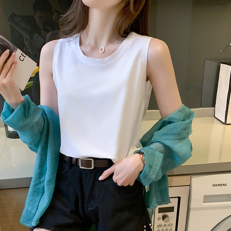 纯棉宽松吊带背心女装夏季新款内搭外穿圆领纯色印花无袖上衣