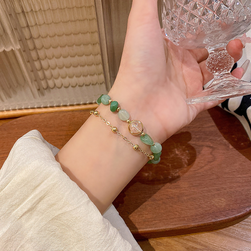 新中式葡萄石青提串珠手串轻奢小众设计感双层叠戴水晶手链女