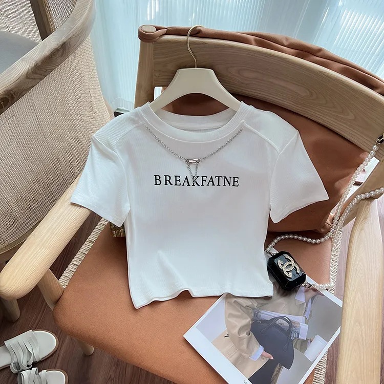 印花短袖T恤女正肩短上衣辣妹装显瘦高腰短款夏季小众修身打底衫