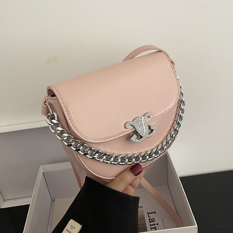 春季时尚百搭通勤小包包女纯色高级质感链条斜挎包单肩马鞍包