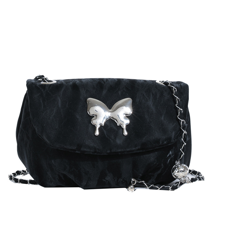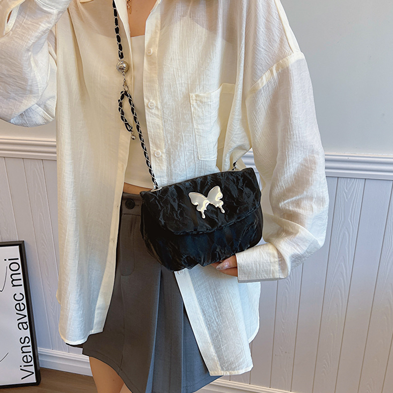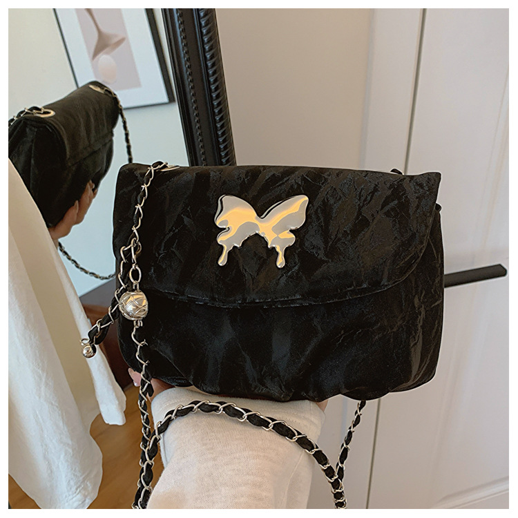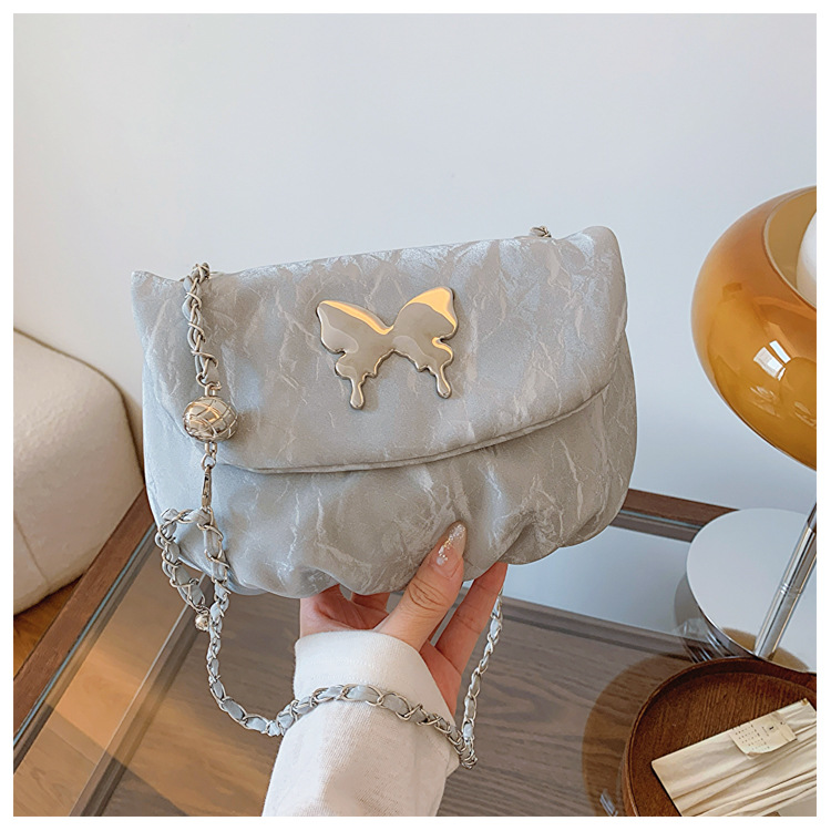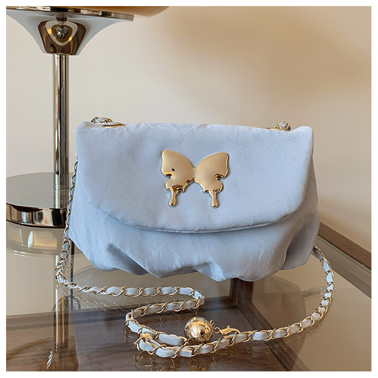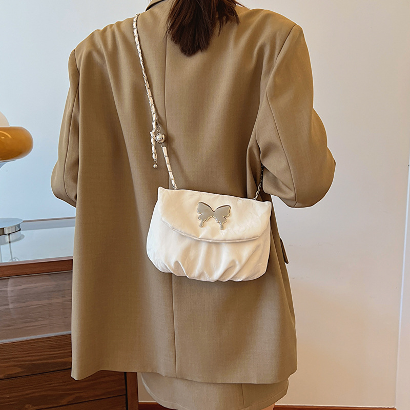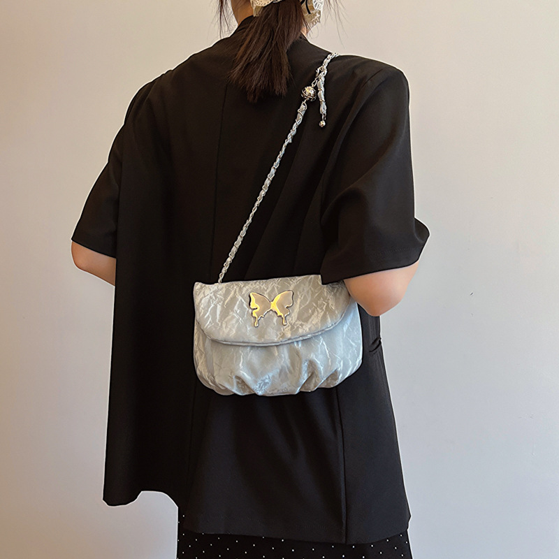 小众夏季唯美个性时尚链条单肩斜挎包包女新款休闲褶皱马鞍包