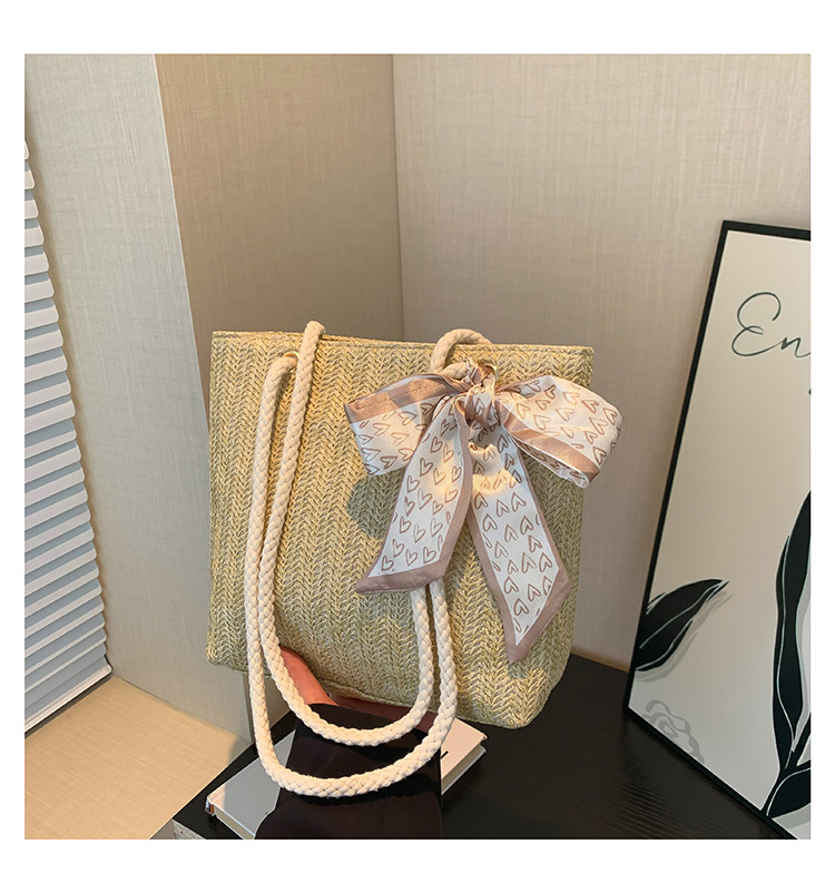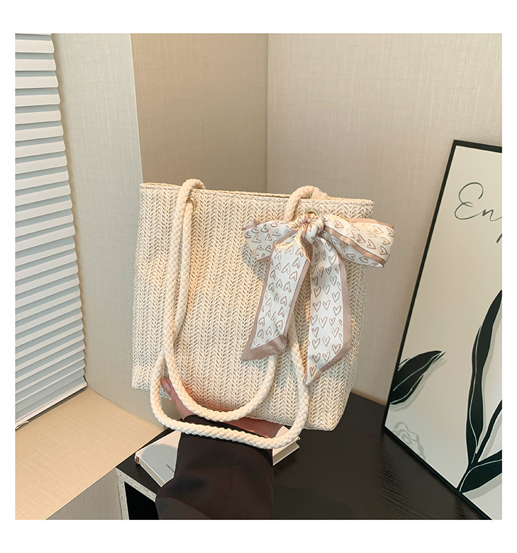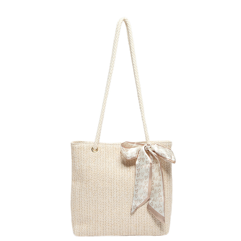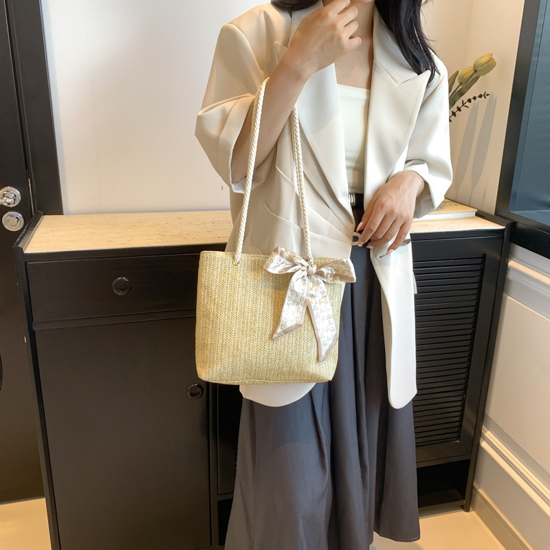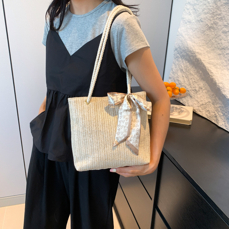 草编大容量时尚丝巾手提包夏季新款百搭ins单肩腋下包托特包