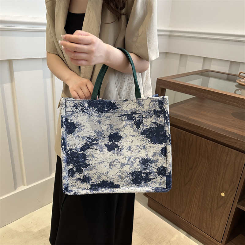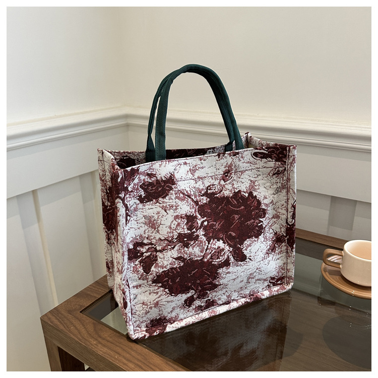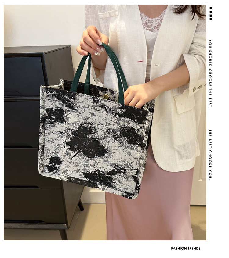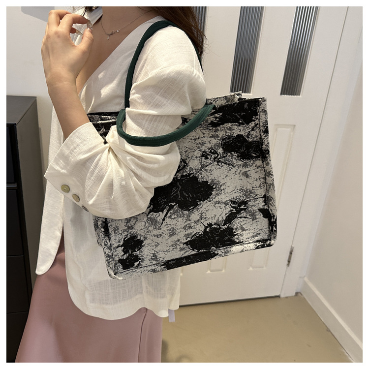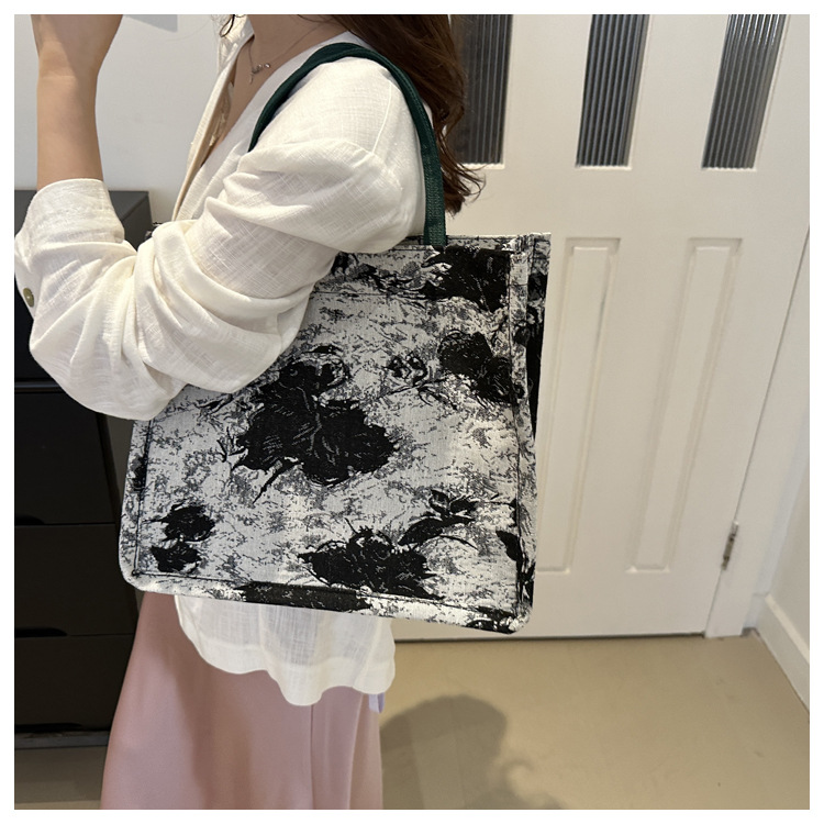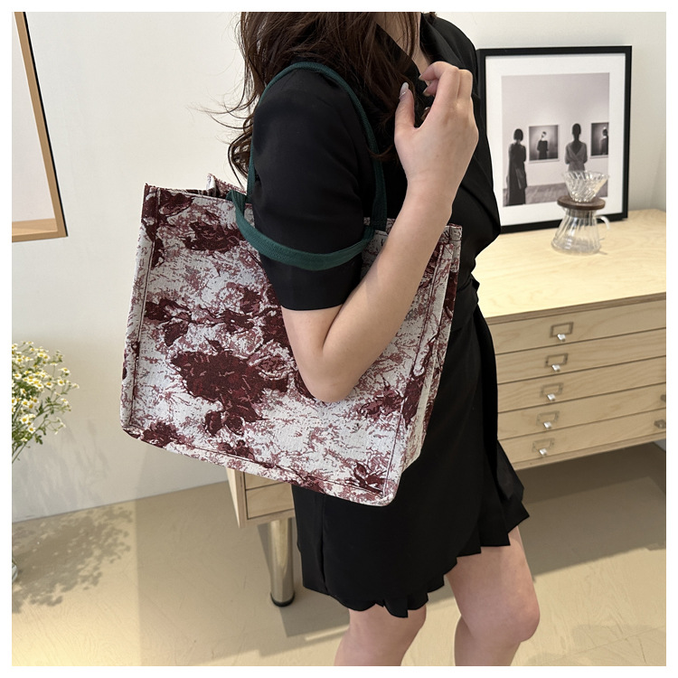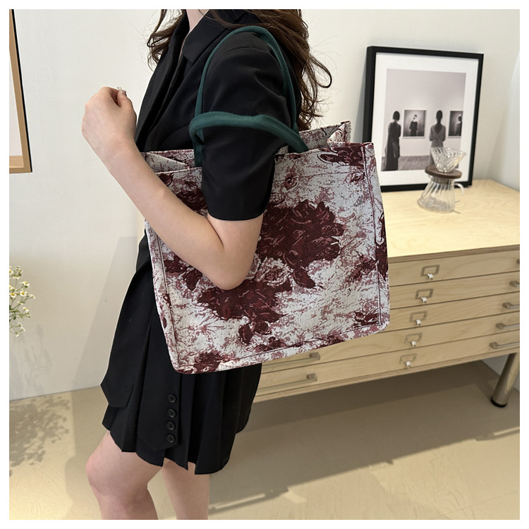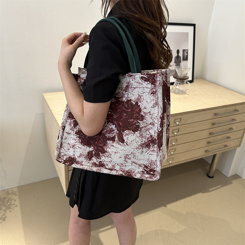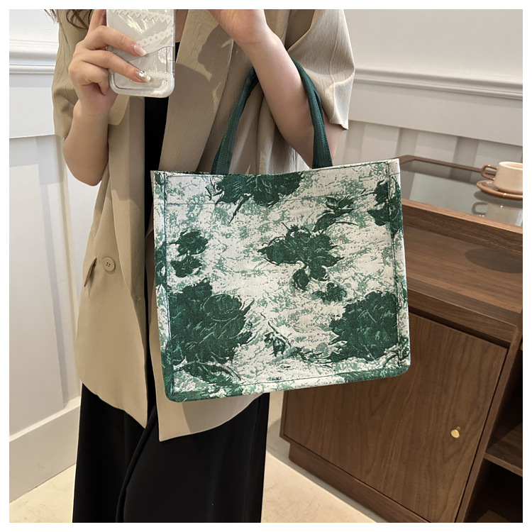 高级感小众包包油画风百搭洋气新款大容量单肩帆布包托特包潮