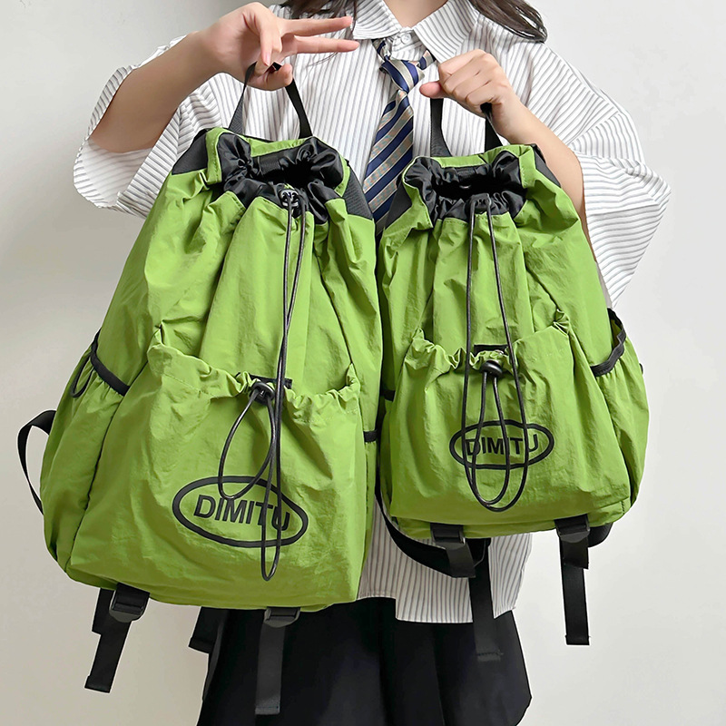 户外登山徒步运动轻便抽绳双肩包束口包大上课包补课包女