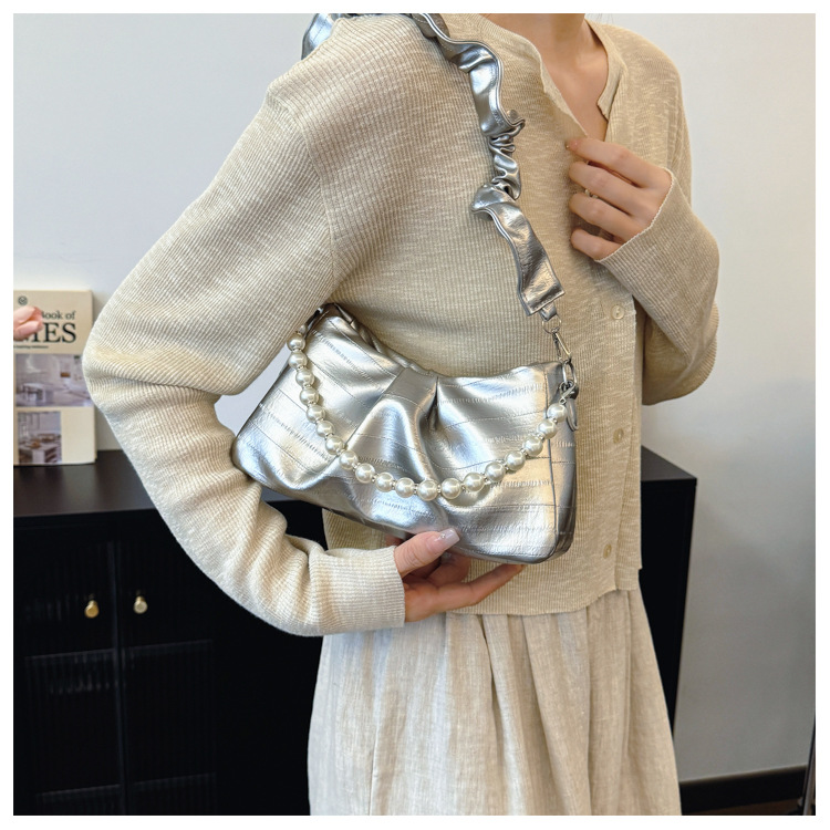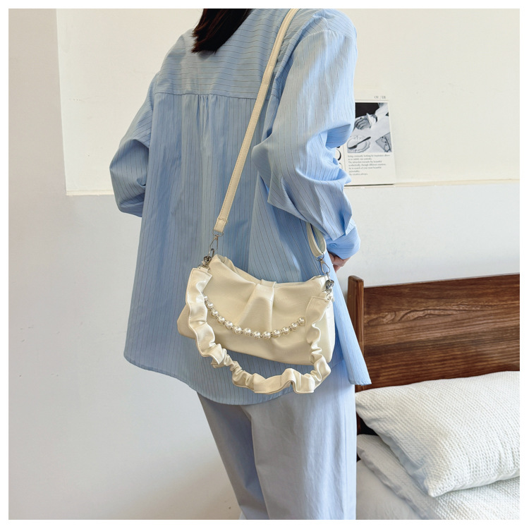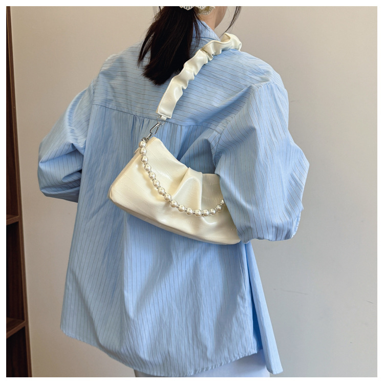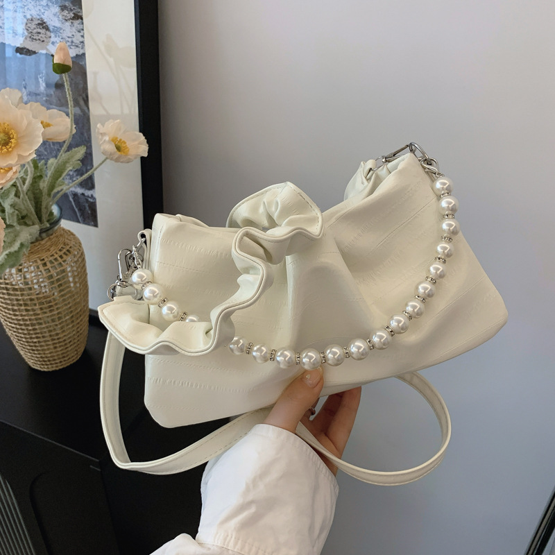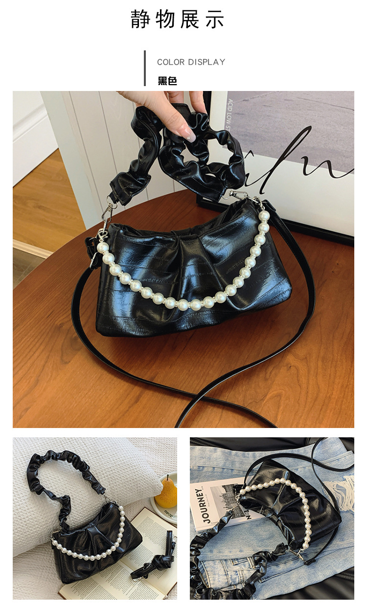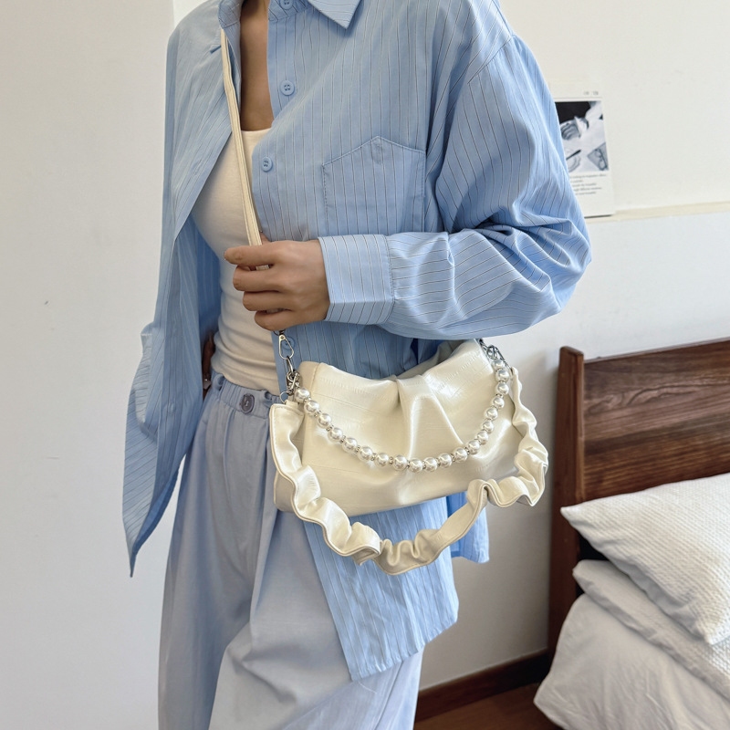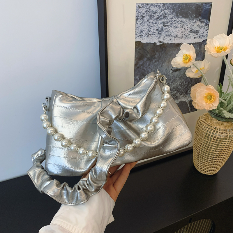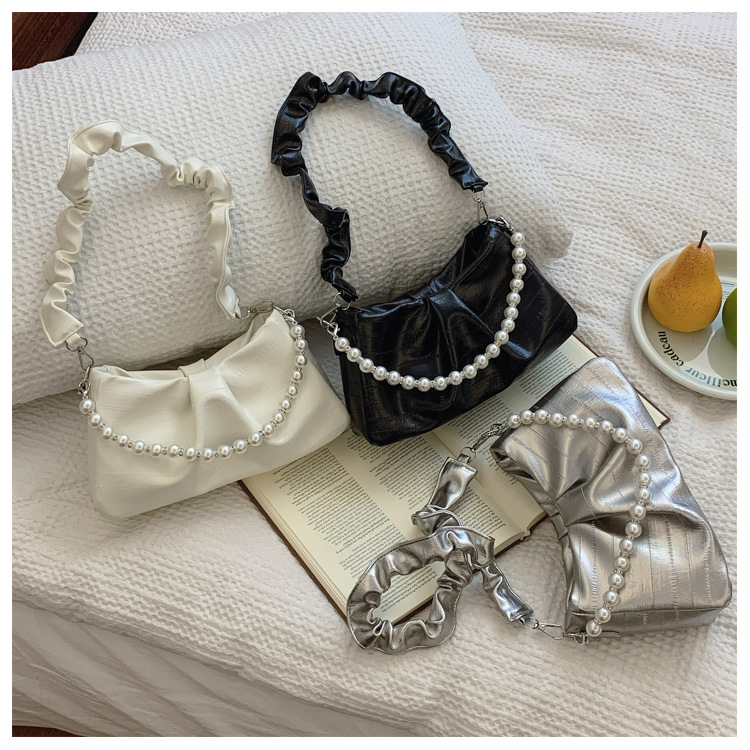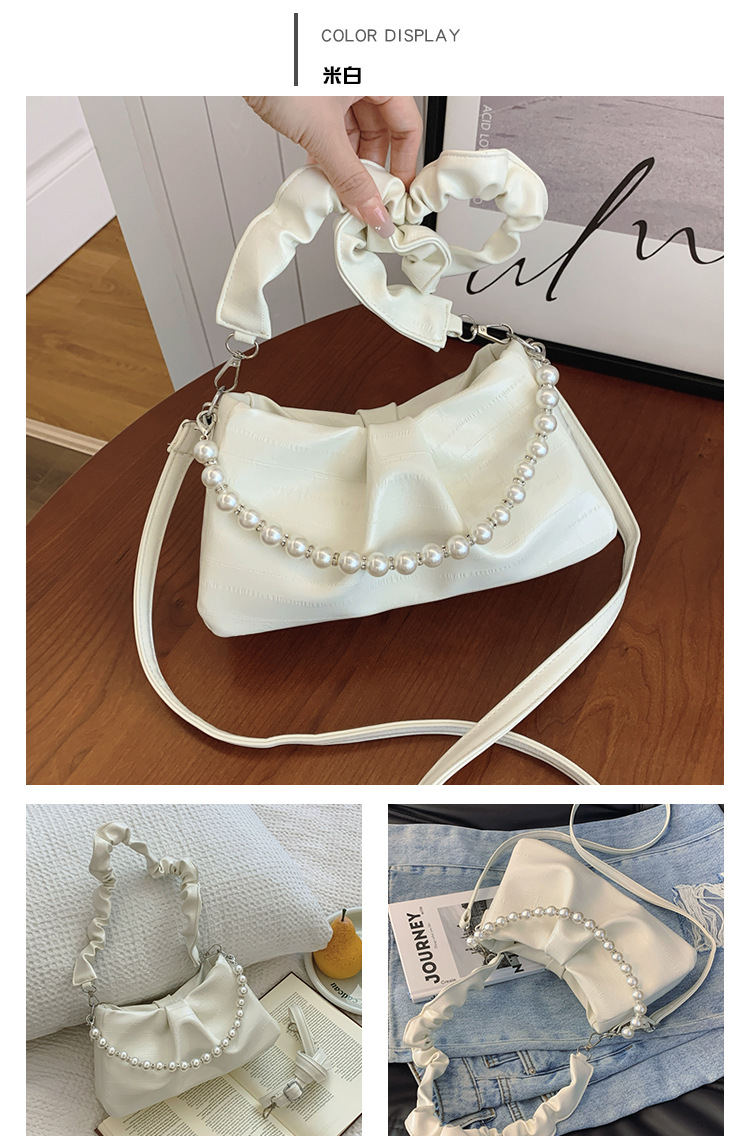 夏季新款设计单肩蝴蝶结拉链清新气质时尚腋下珍珠链条包包
