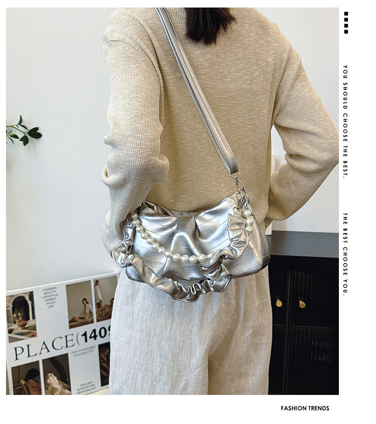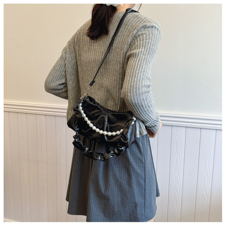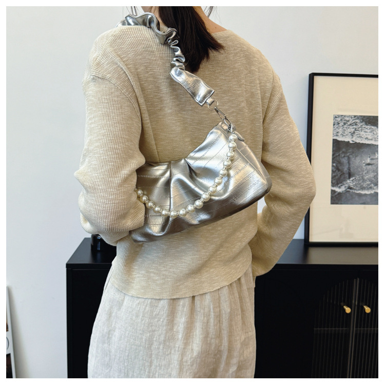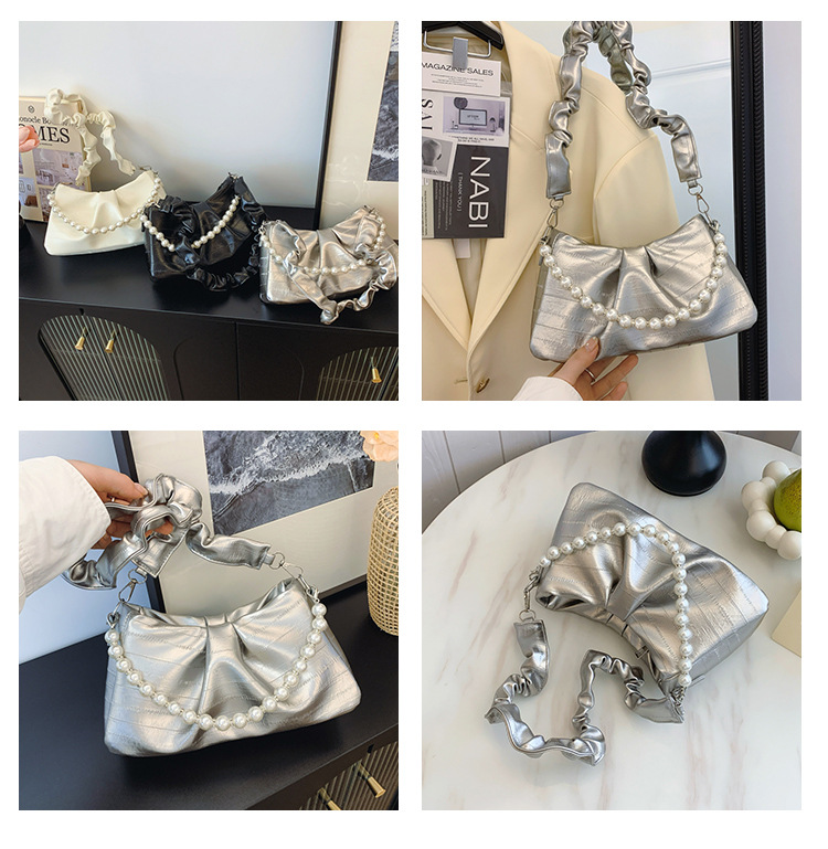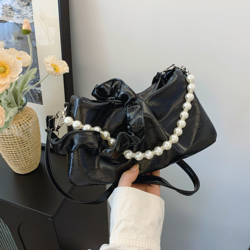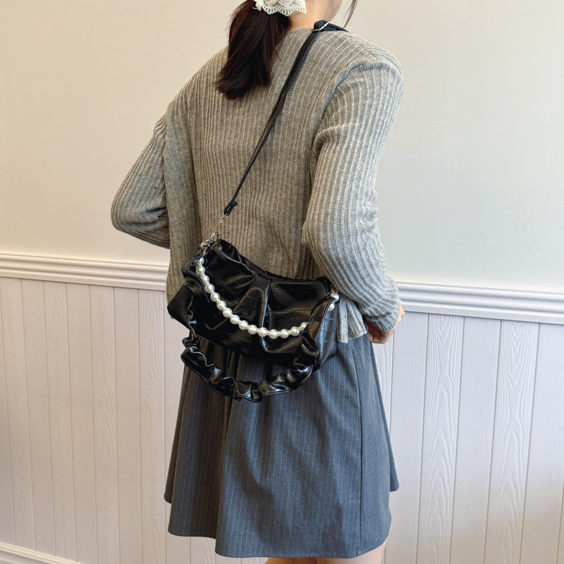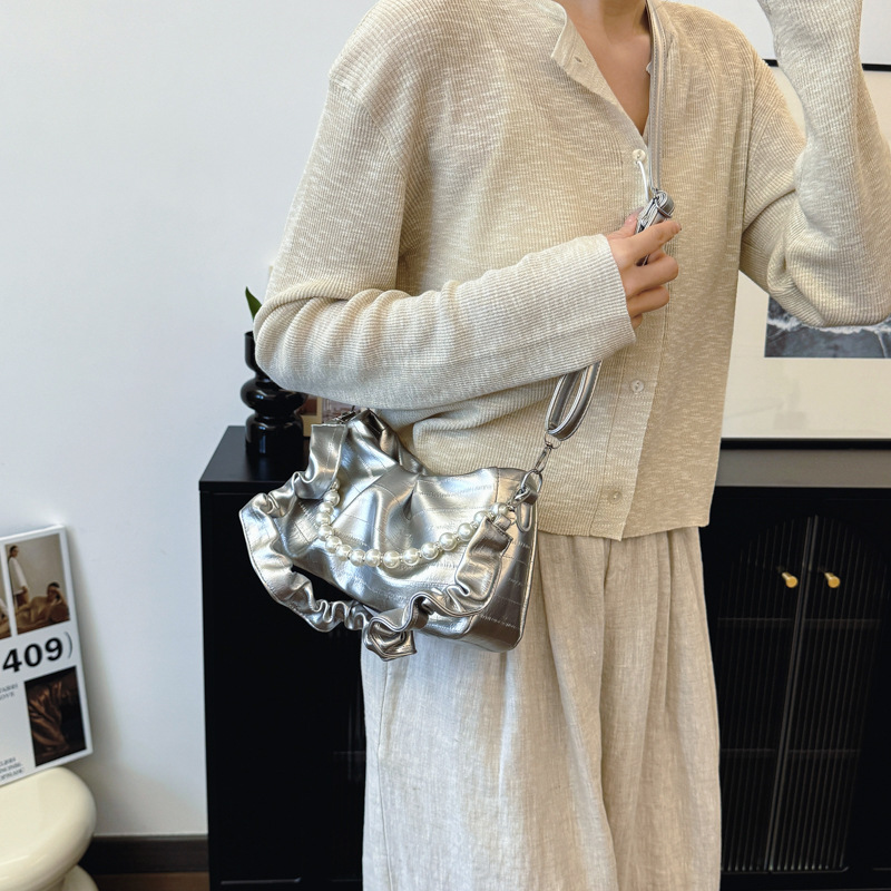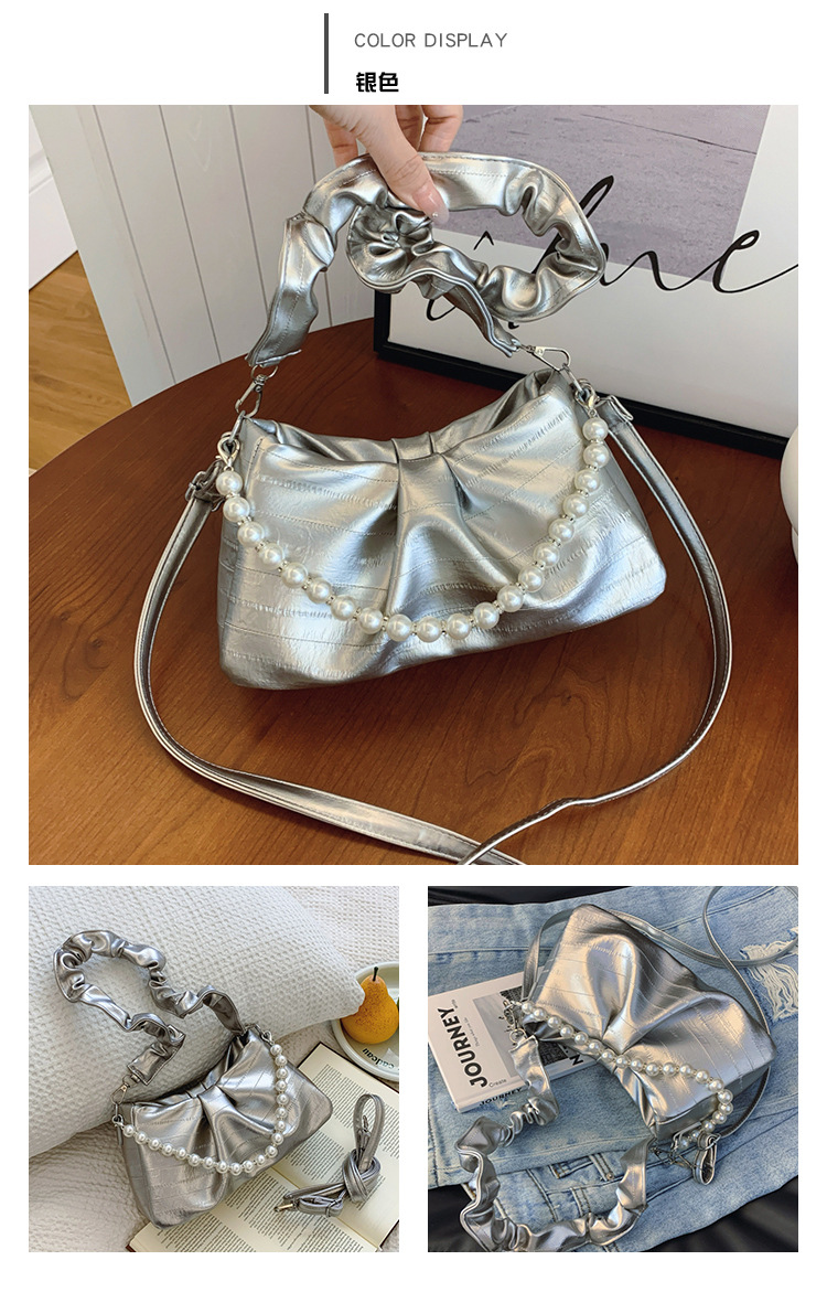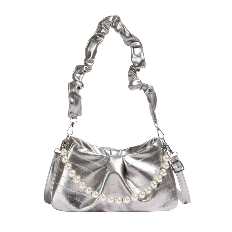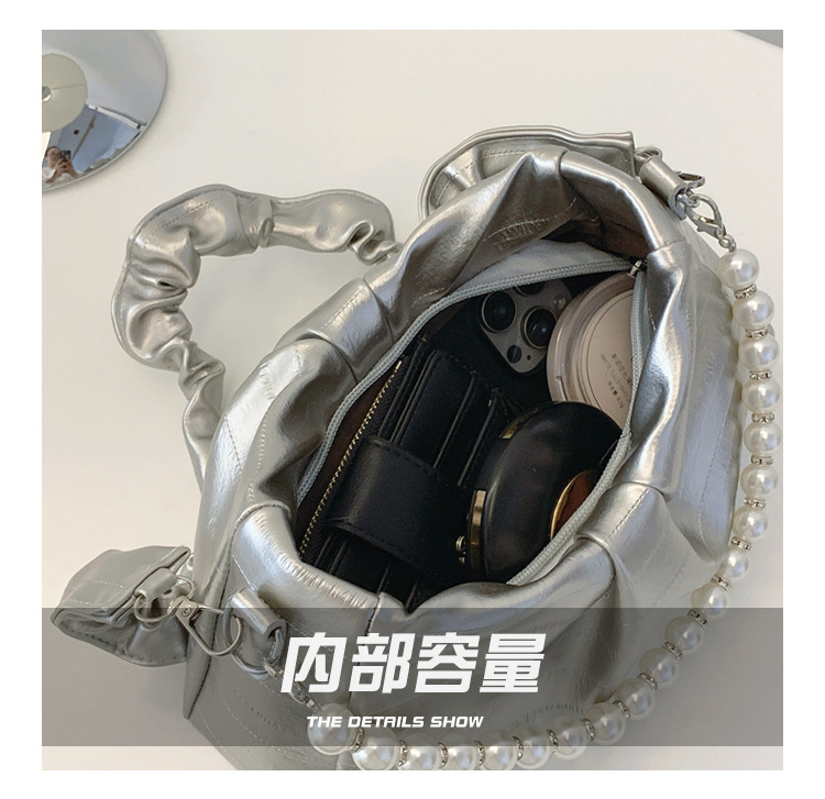 夏季新款设计单肩蝴蝶结拉链清新气质时尚腋下珍珠链条包包