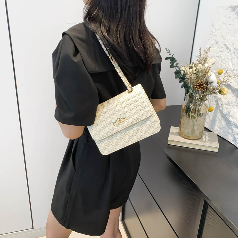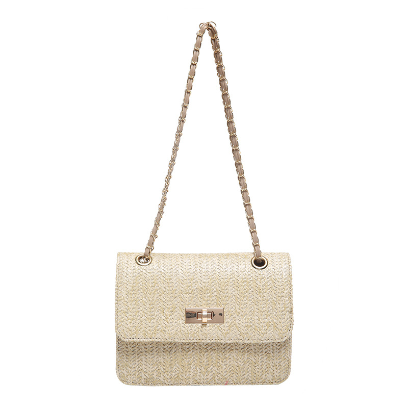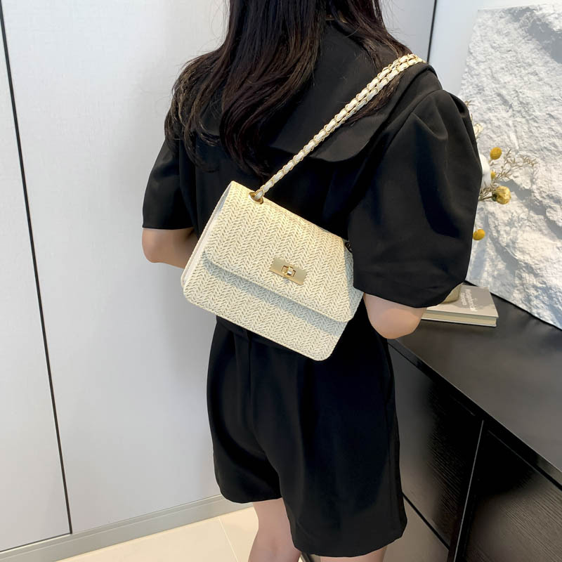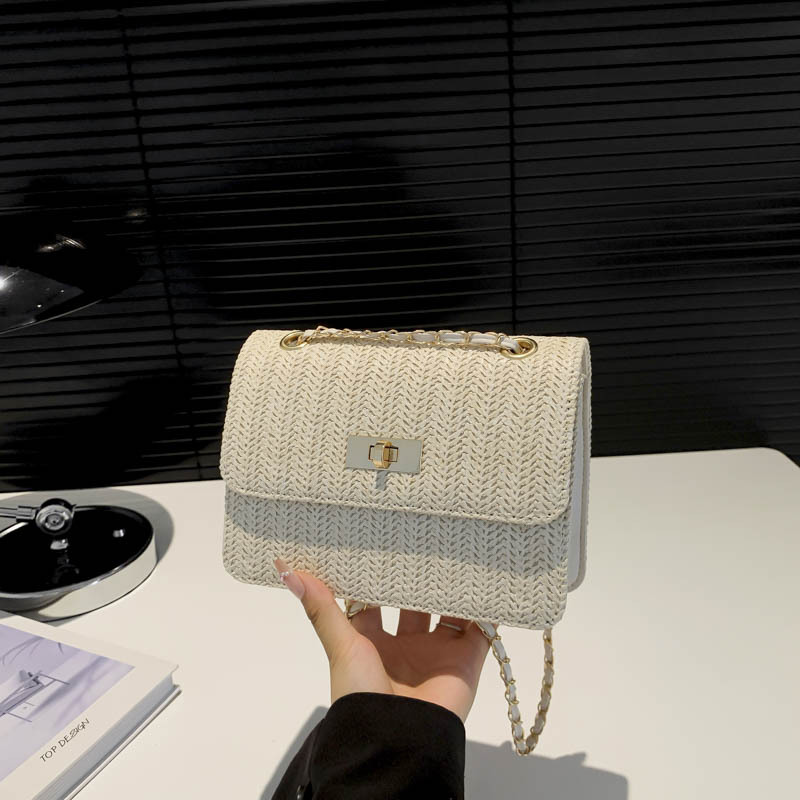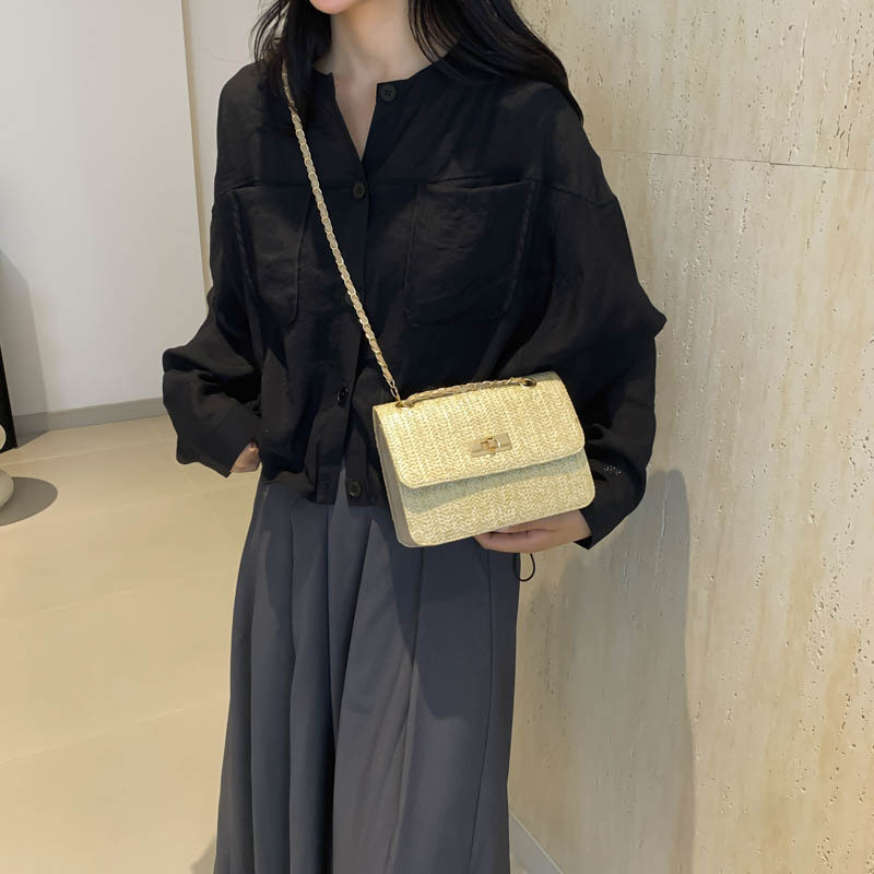 夏季锁扣草编包洋气新款时尚个性沙滩潮流质感链条单肩斜挎包