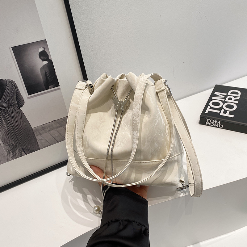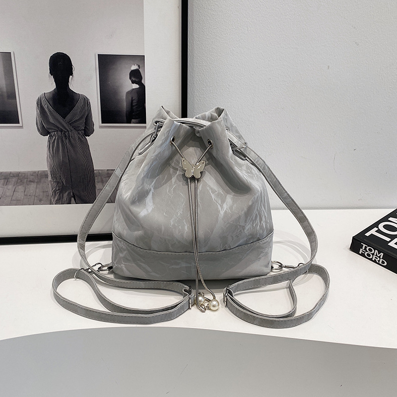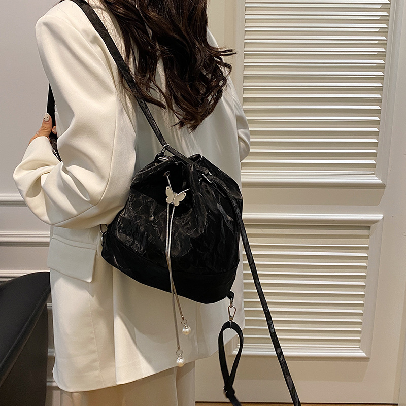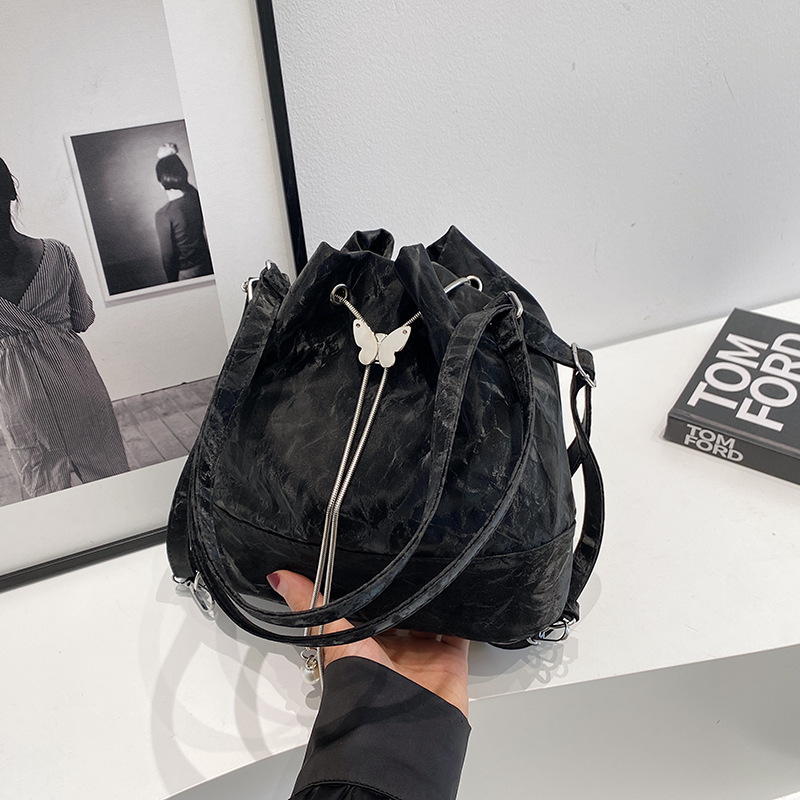 新款蝴蝶链条简约清新气质休闲水桶流行潮流单肩时尚双肩女包