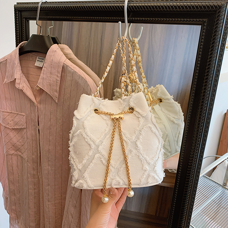 小众设计水桶包包夏季新款抽绳毛边女包斜挎包时尚简约单肩包