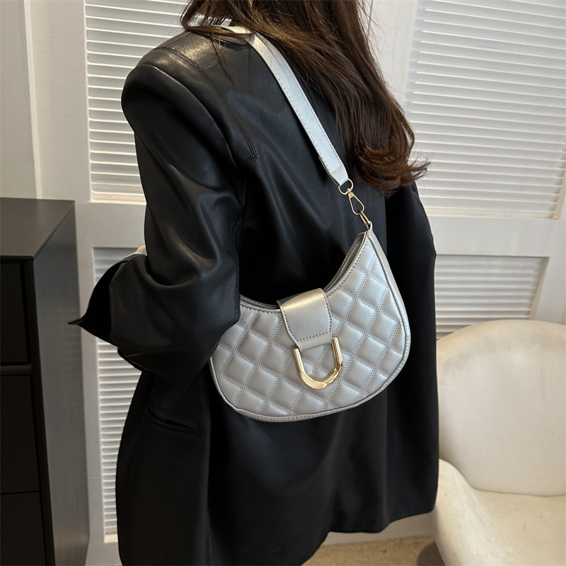 高级感质感包包女新款时尚菱格单肩腋下包百搭小众链条马鞍包