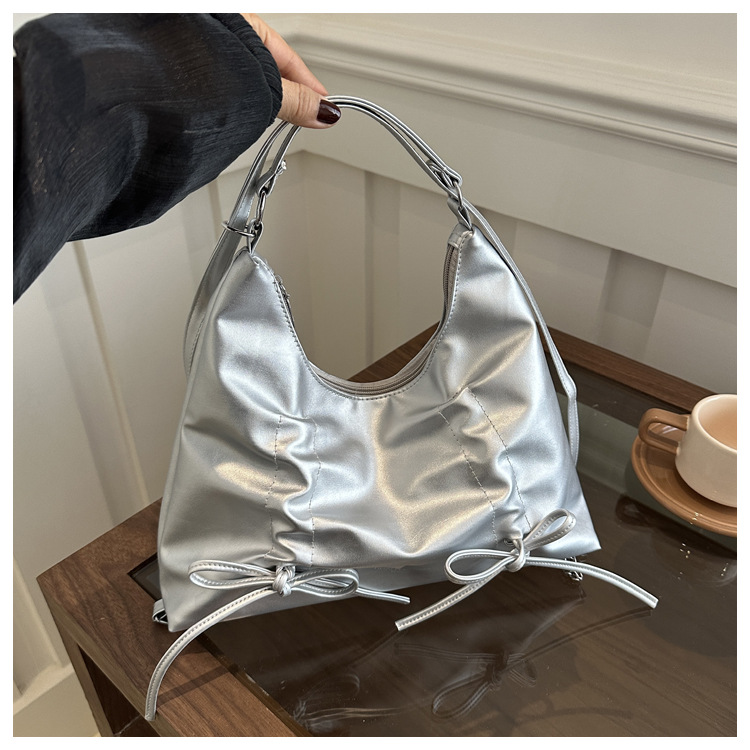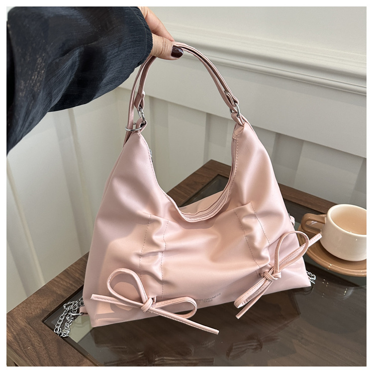 高级时尚质感蝴蝶结褶皱单肩包夏季新款百搭ins休闲包托特包