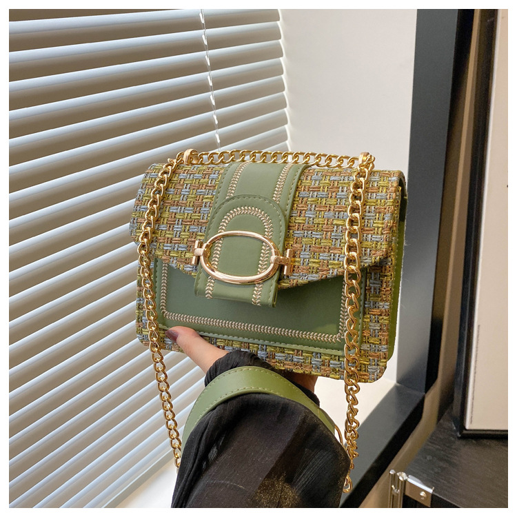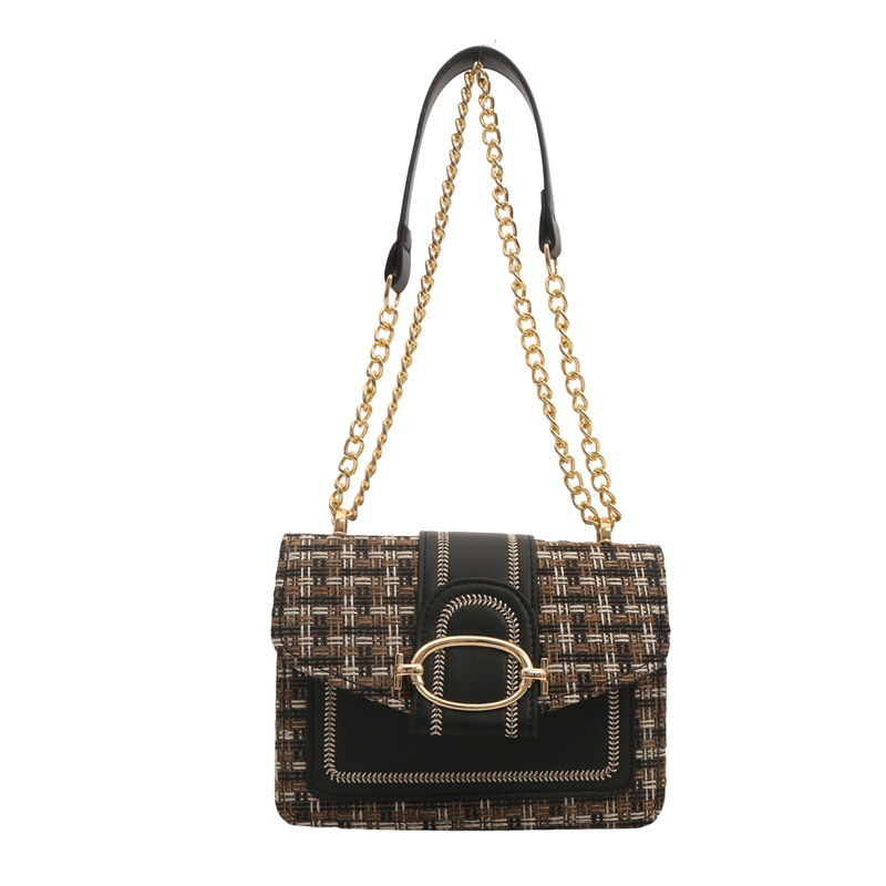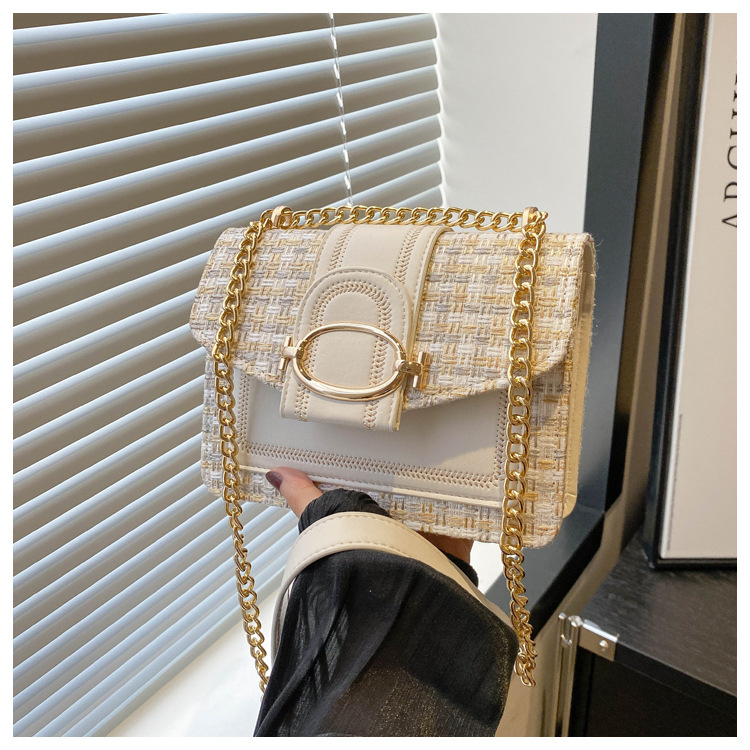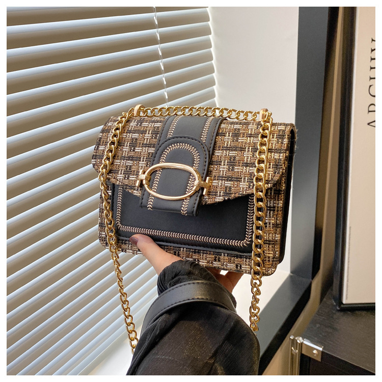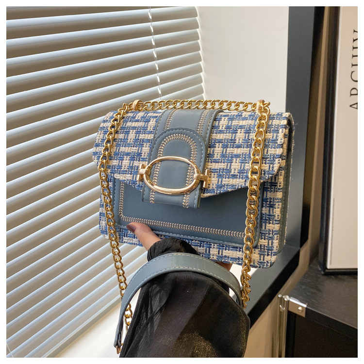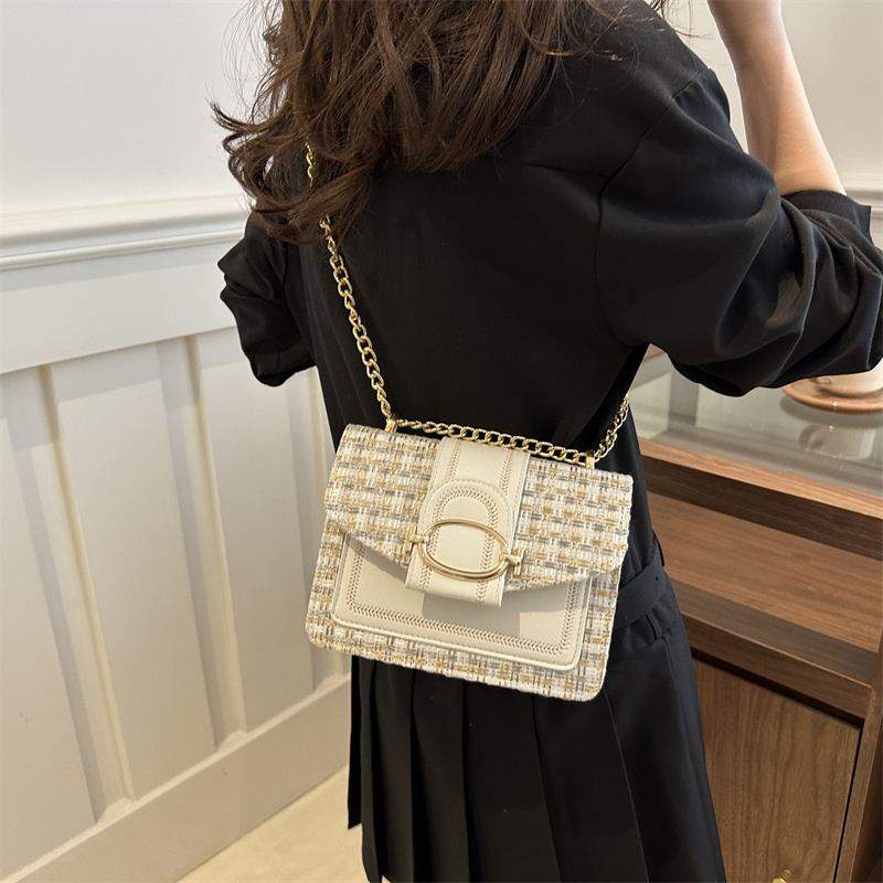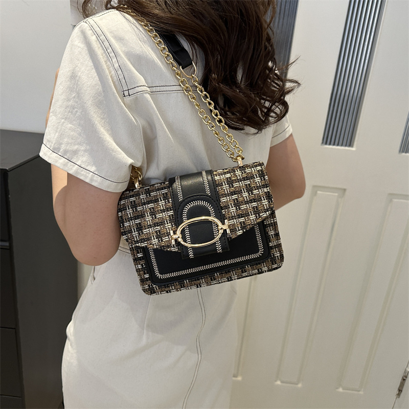 ins时尚小包包女夏新款格纹绣线单肩包轻奢百搭斜挎包链条包