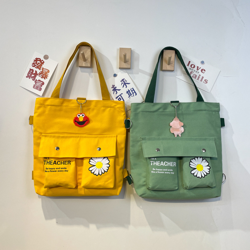 新款轻便学生放书帆布袋日系百搭耐磨女生补课手提斜挎包两用包包