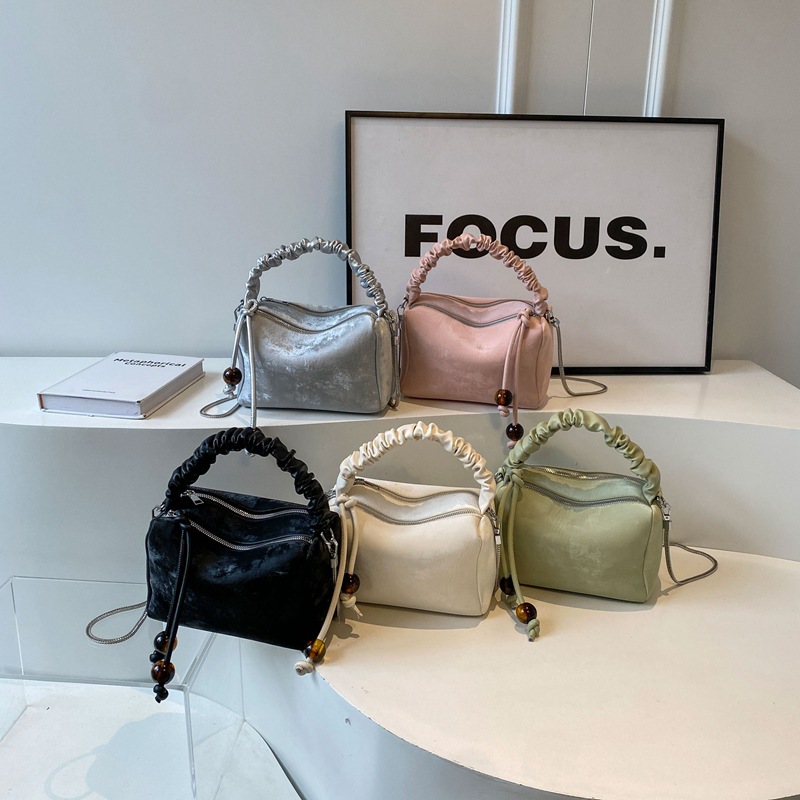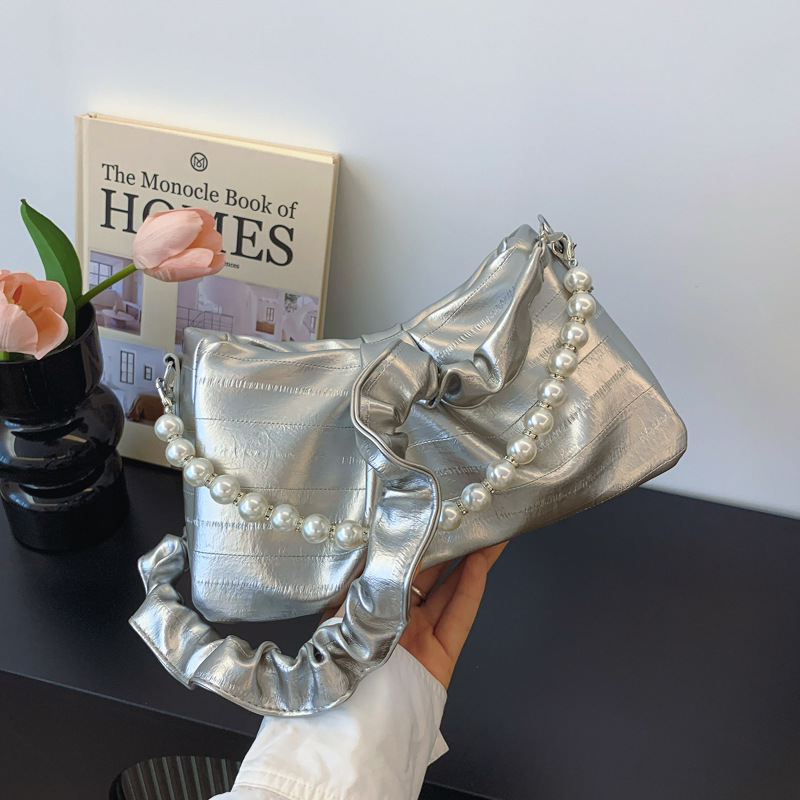 新款简约休闲小包包女时尚百搭单肩斜挎高质感褶皱手提腋下通勤包