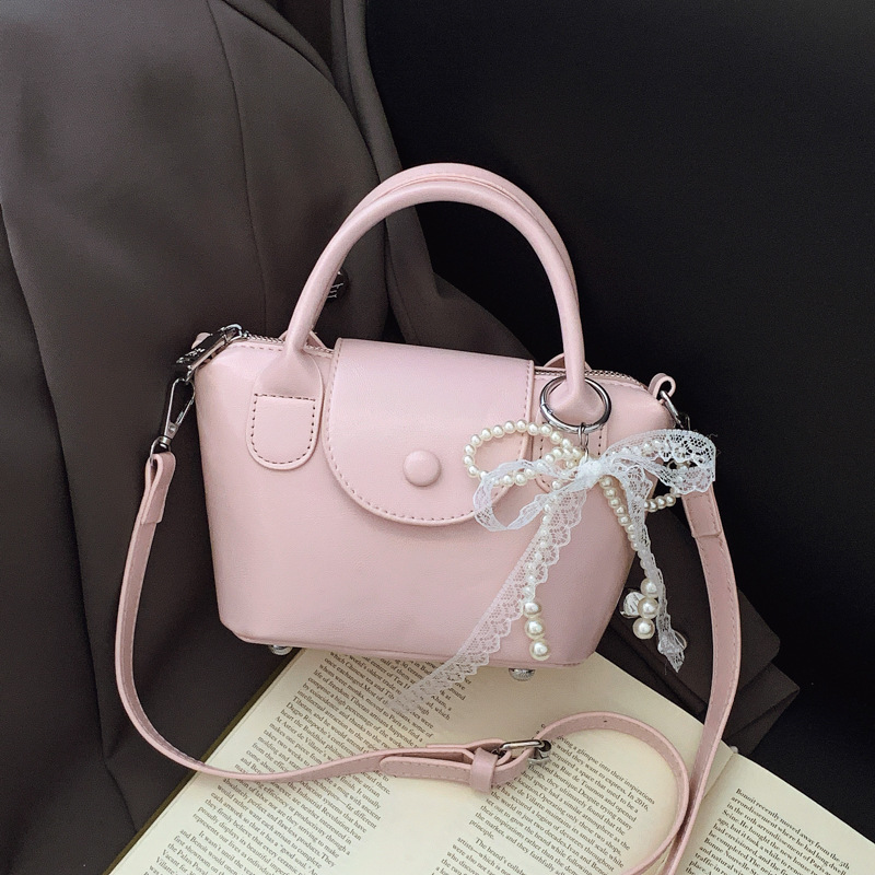 夏季新款设计单肩蝴蝶结拉链清新气质时尚腋下珍珠链条包包