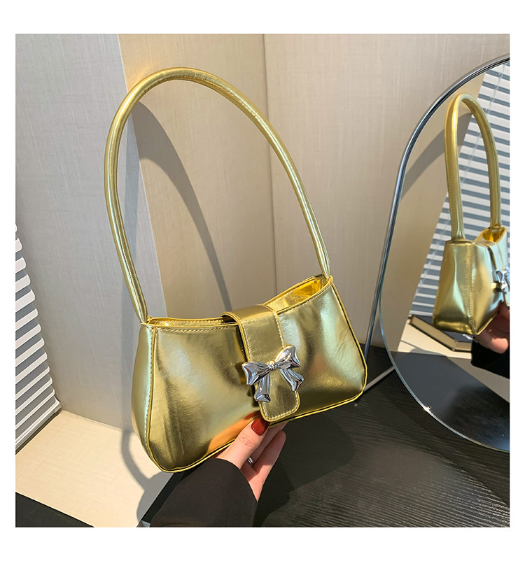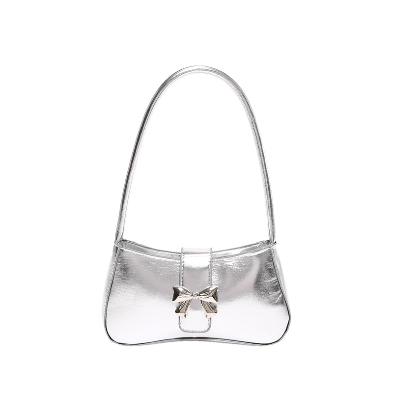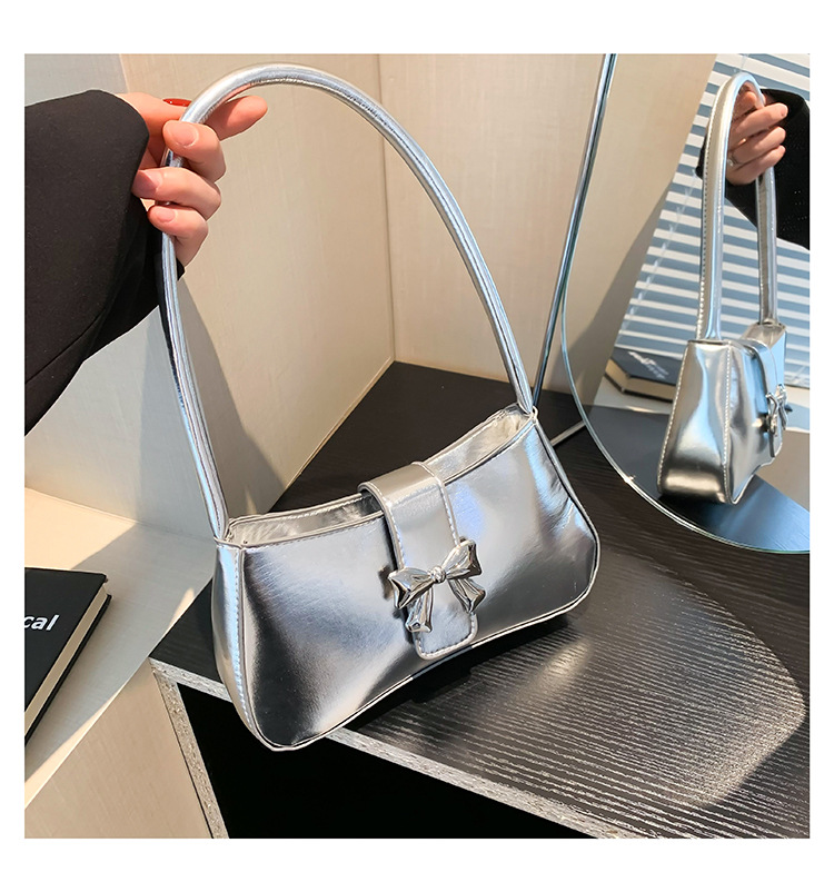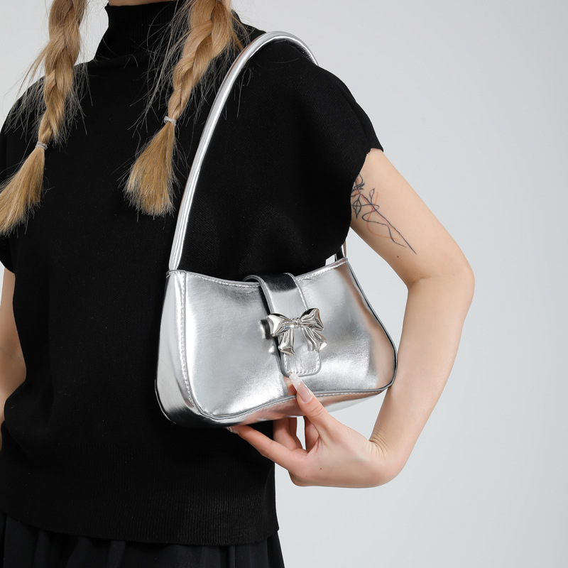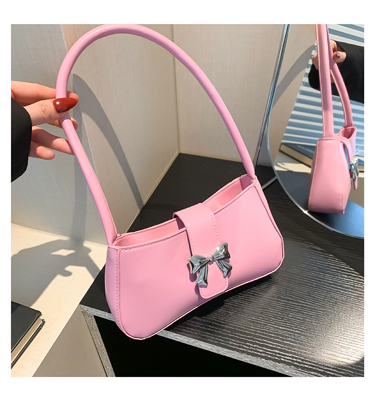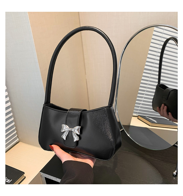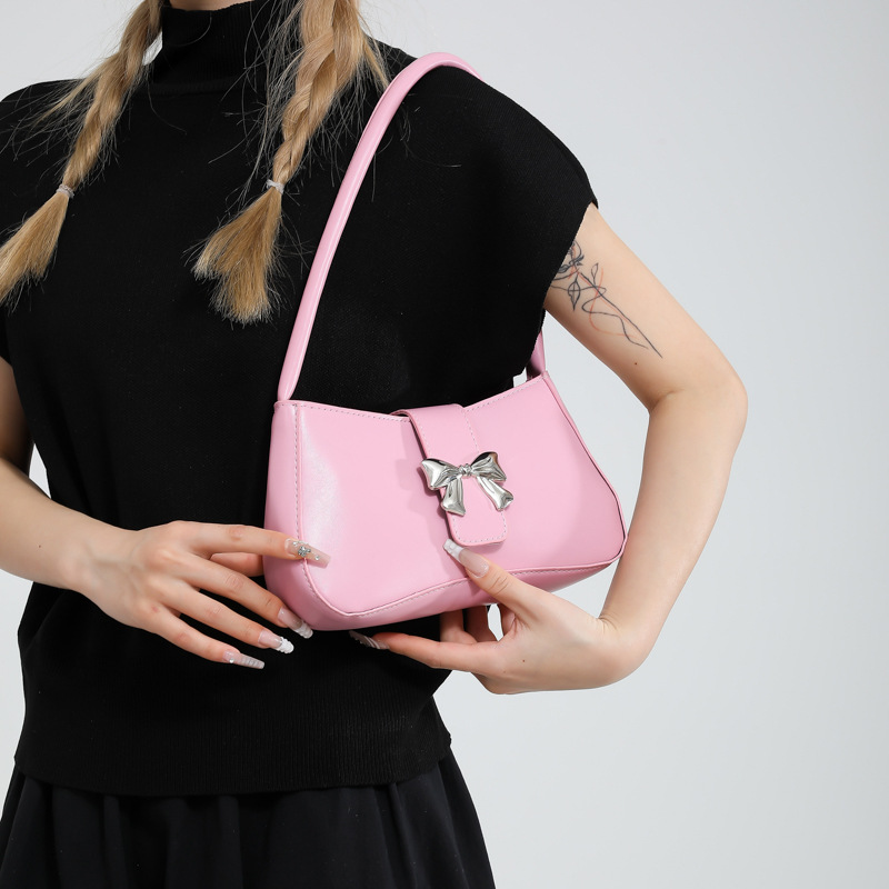 休闲质感蝴蝶装饰包包女新款潮时尚简约纯色洋气单肩腋下法棍