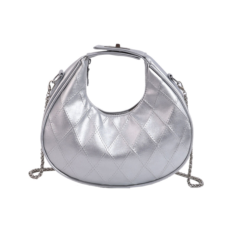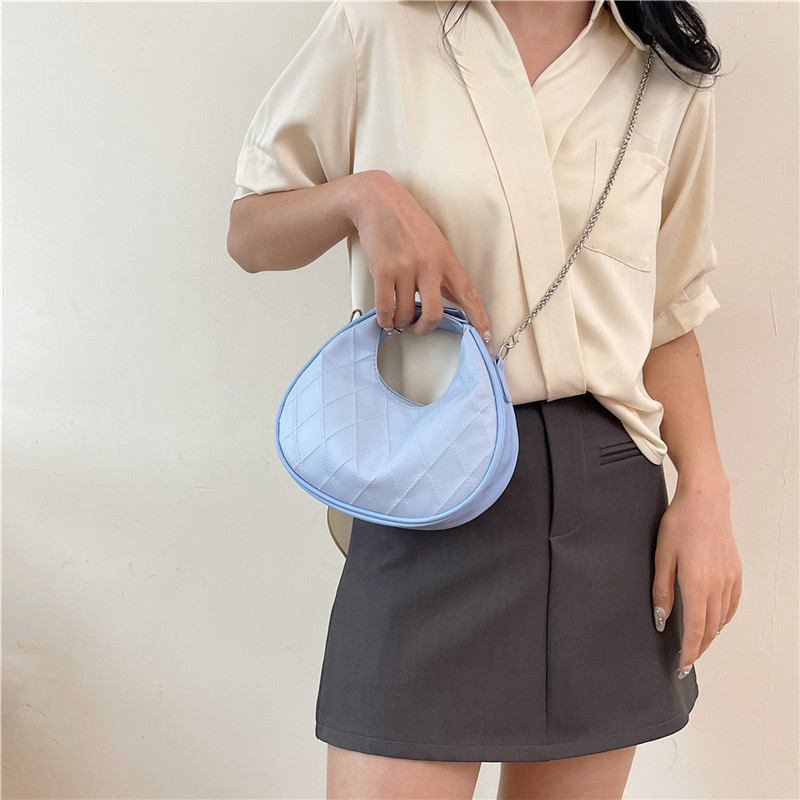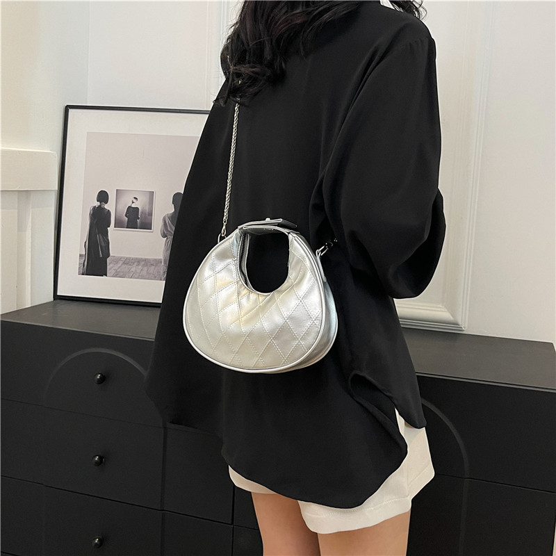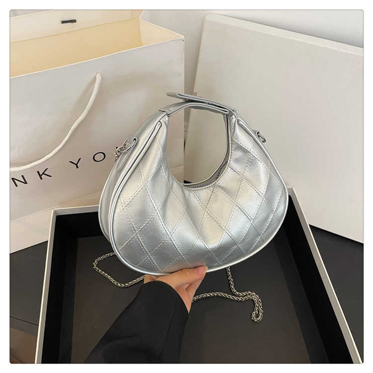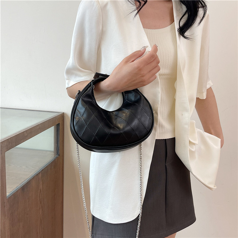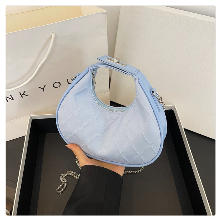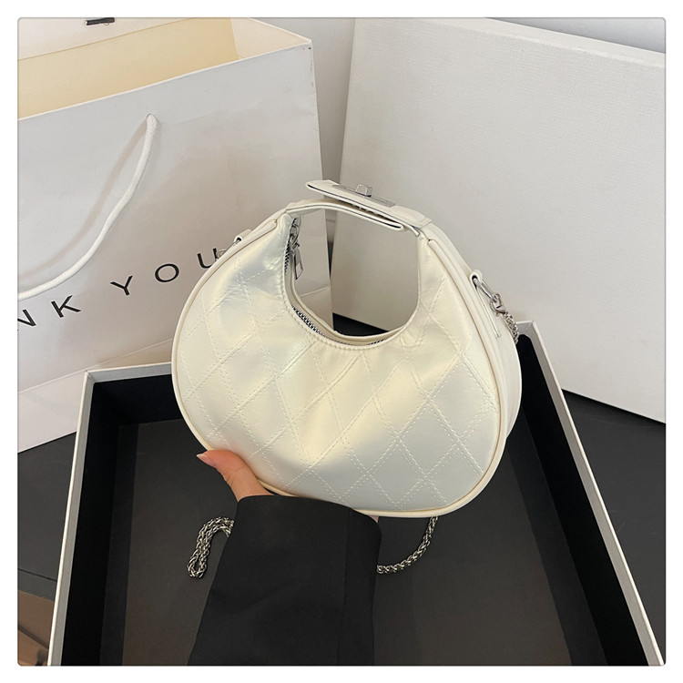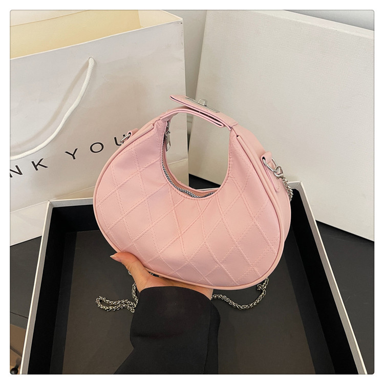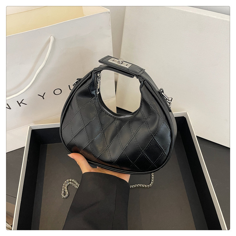 菱格绣线链条包包新款纯色气质锁扣斜挎包时尚休闲单肩月牙包