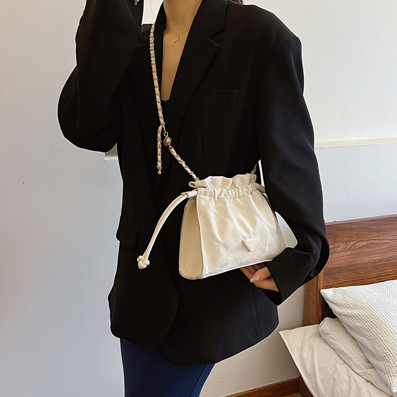 单肩包新中式小众褶皱质感云朵包国风串珠链条简约斜挎包包女