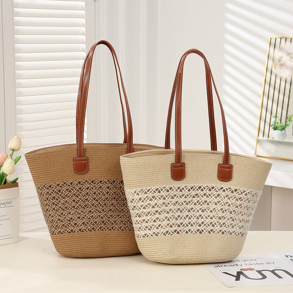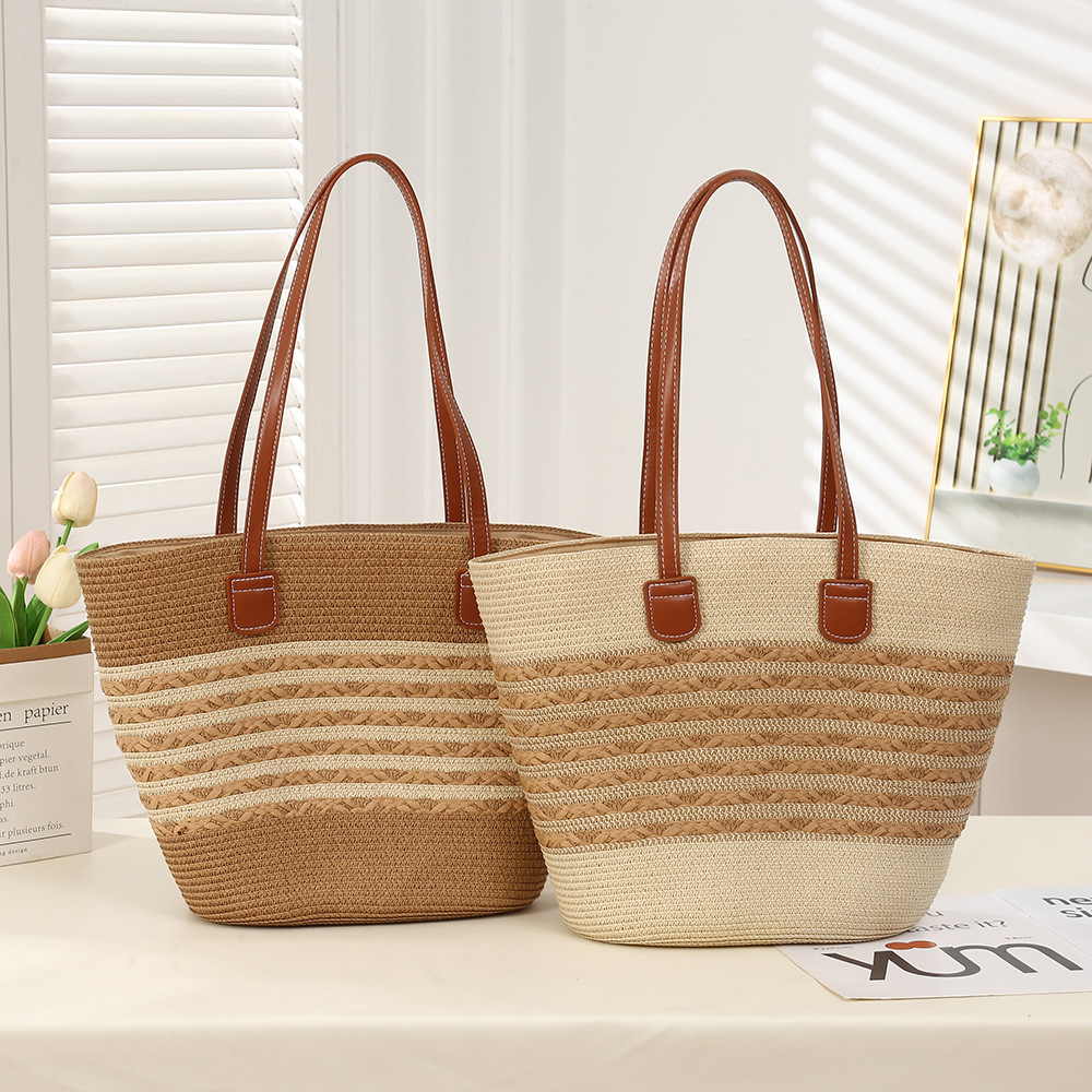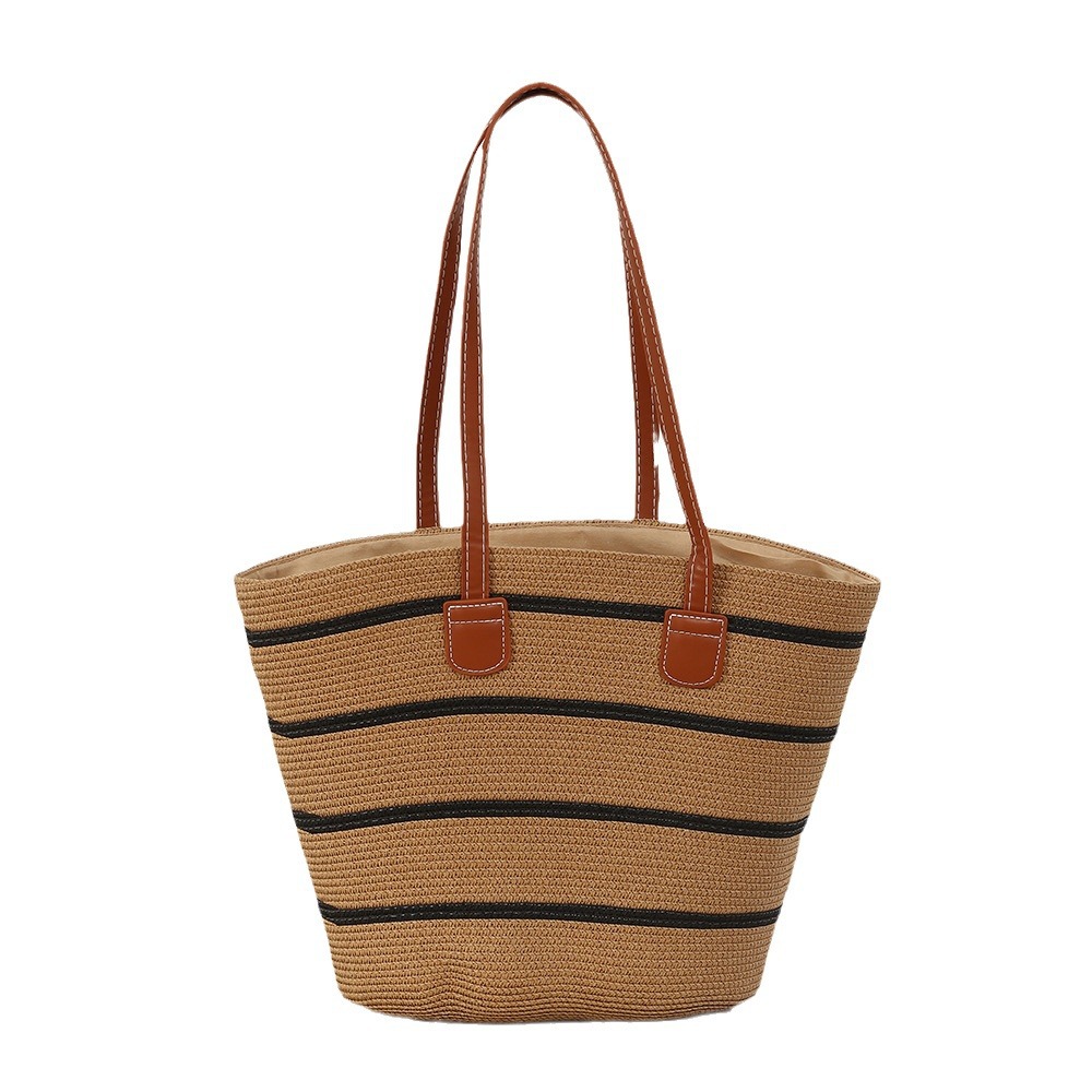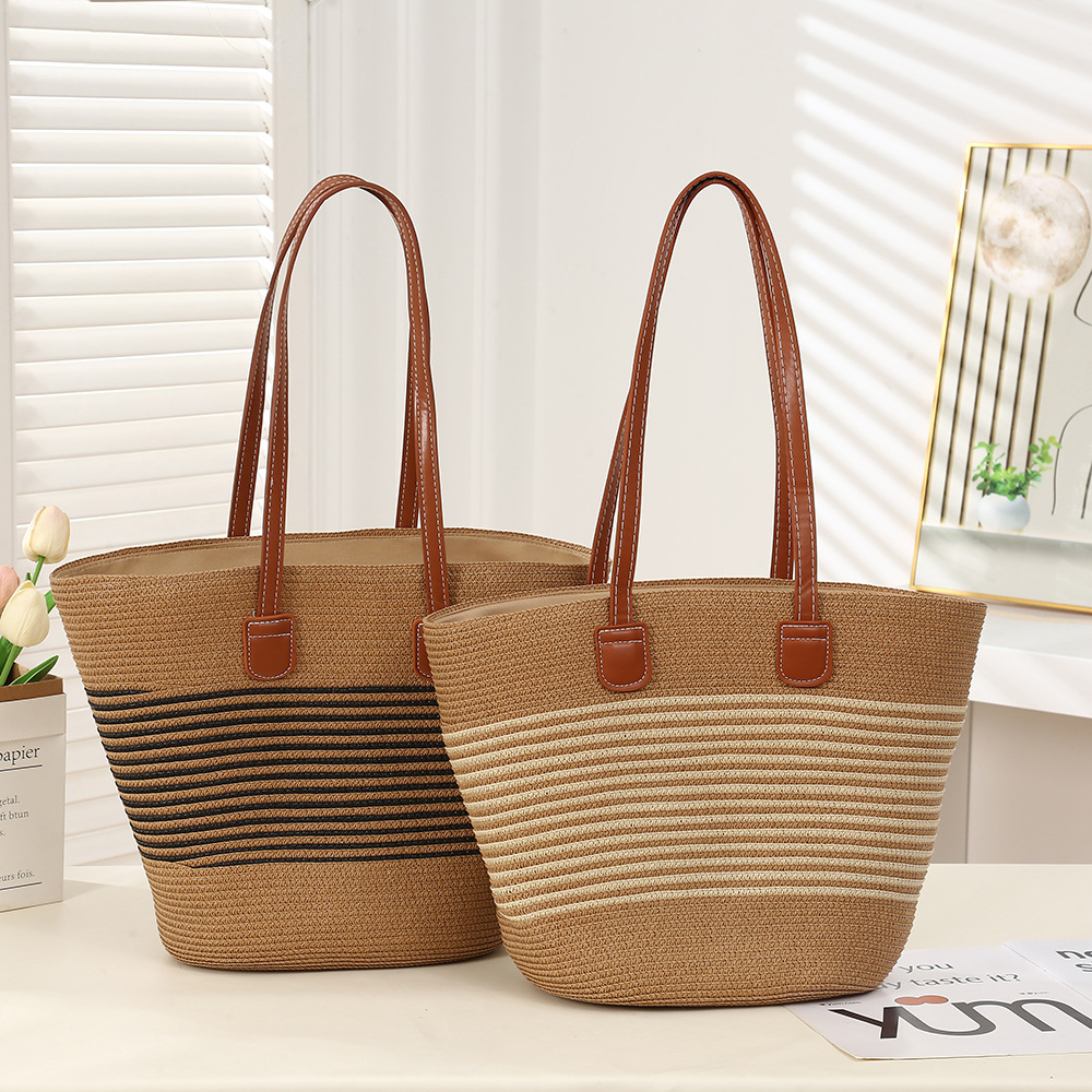 夏季海边条纹草编大包包简约休闲大容量单肩包度假编织包斜跨女包
