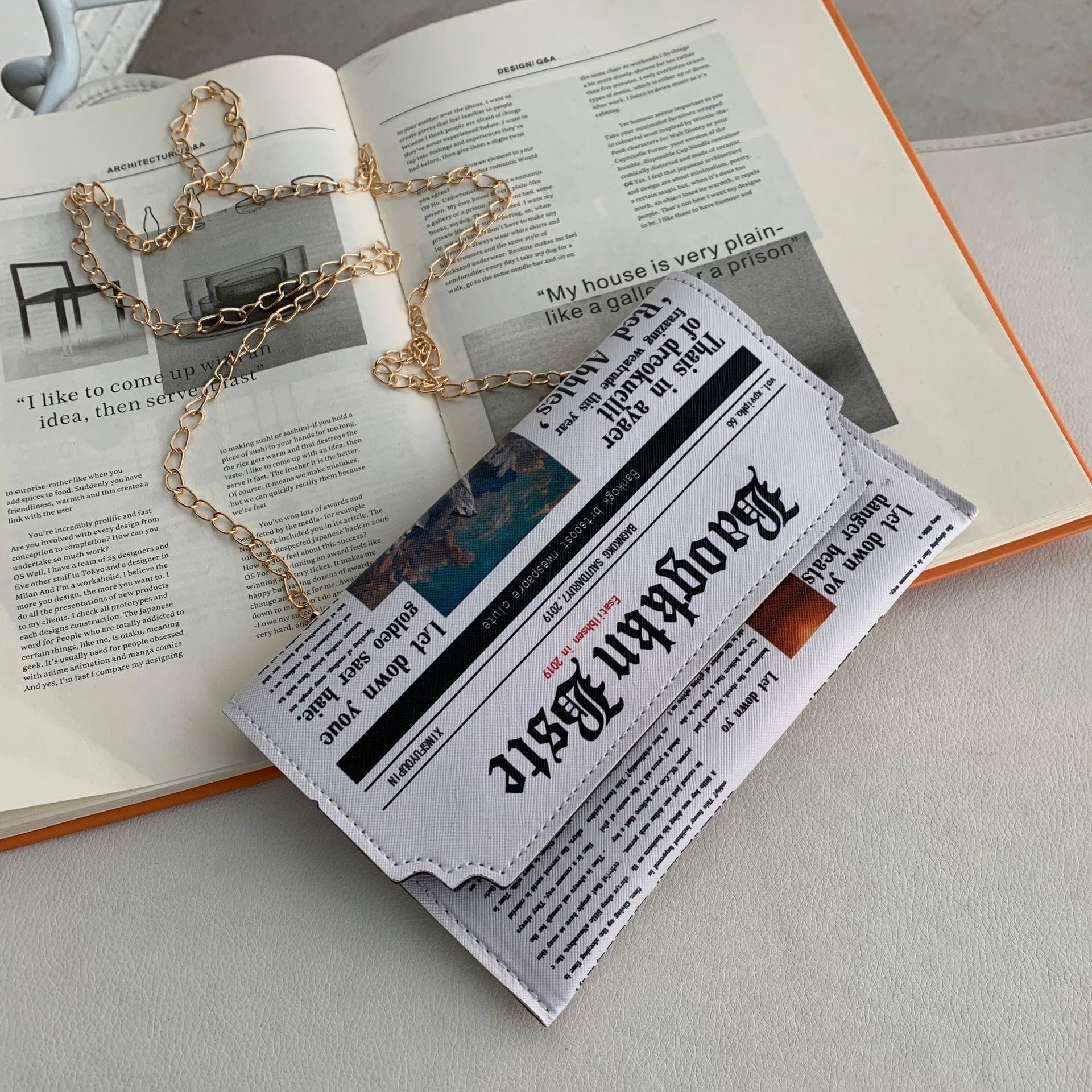 新款欧美时尚创意恶搞趣味英文字母报纸包网红信封包pu斜挎包