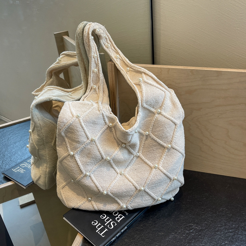 夏天小清新珍珠编织包针织毛线包包新款包包女简约手工单肩包