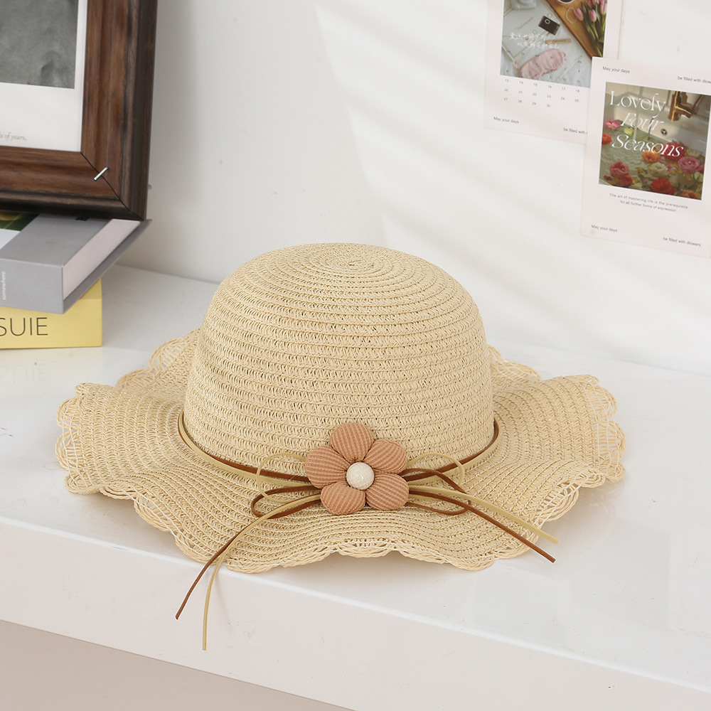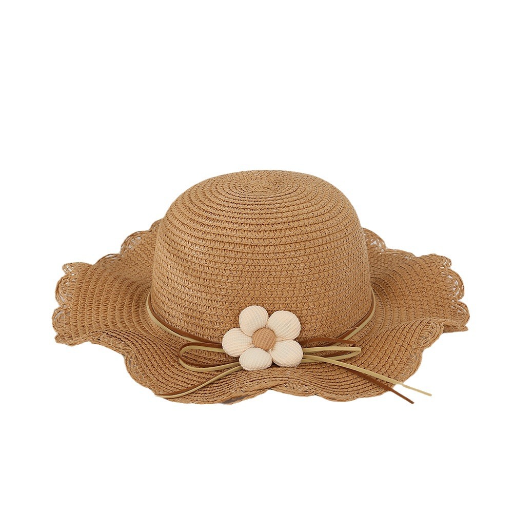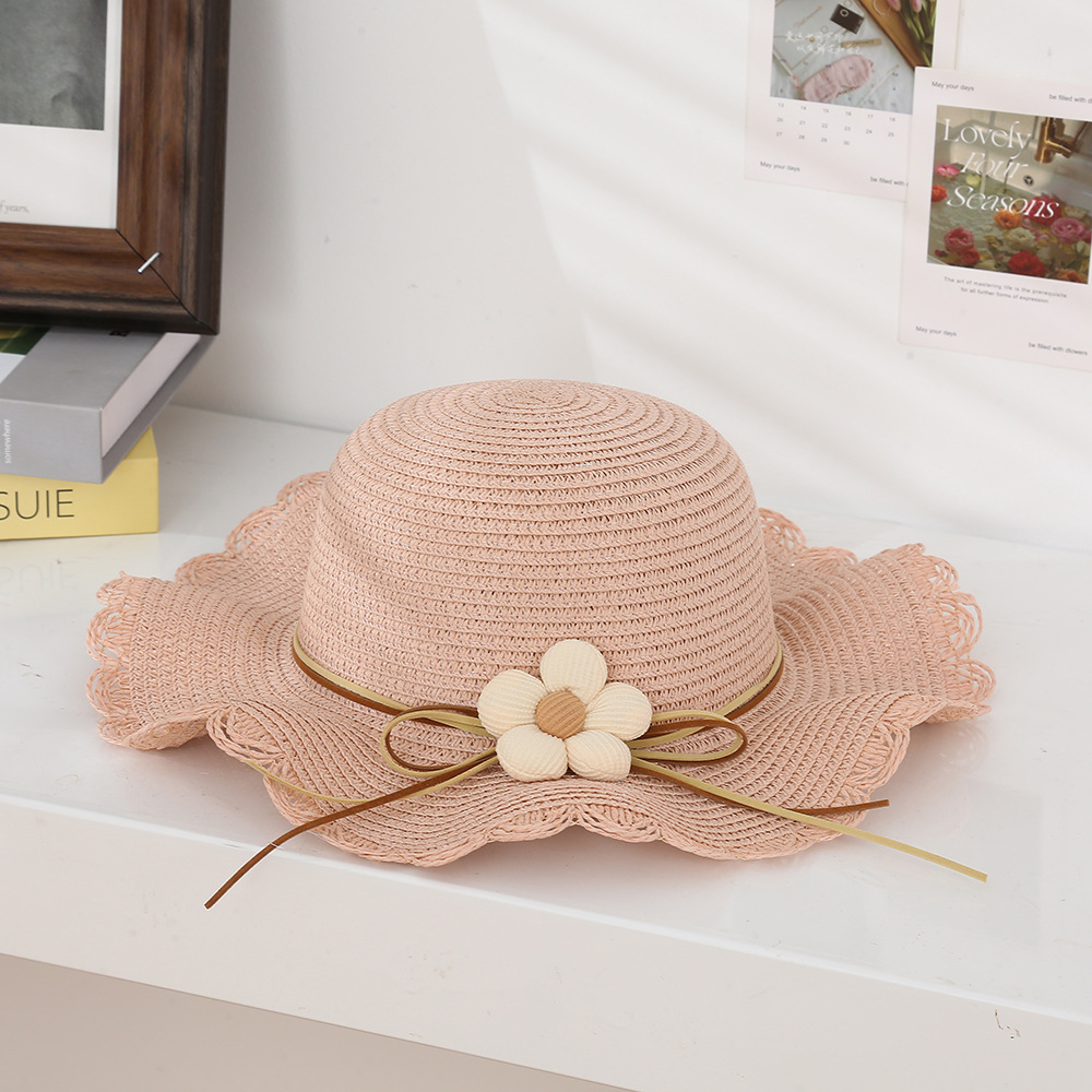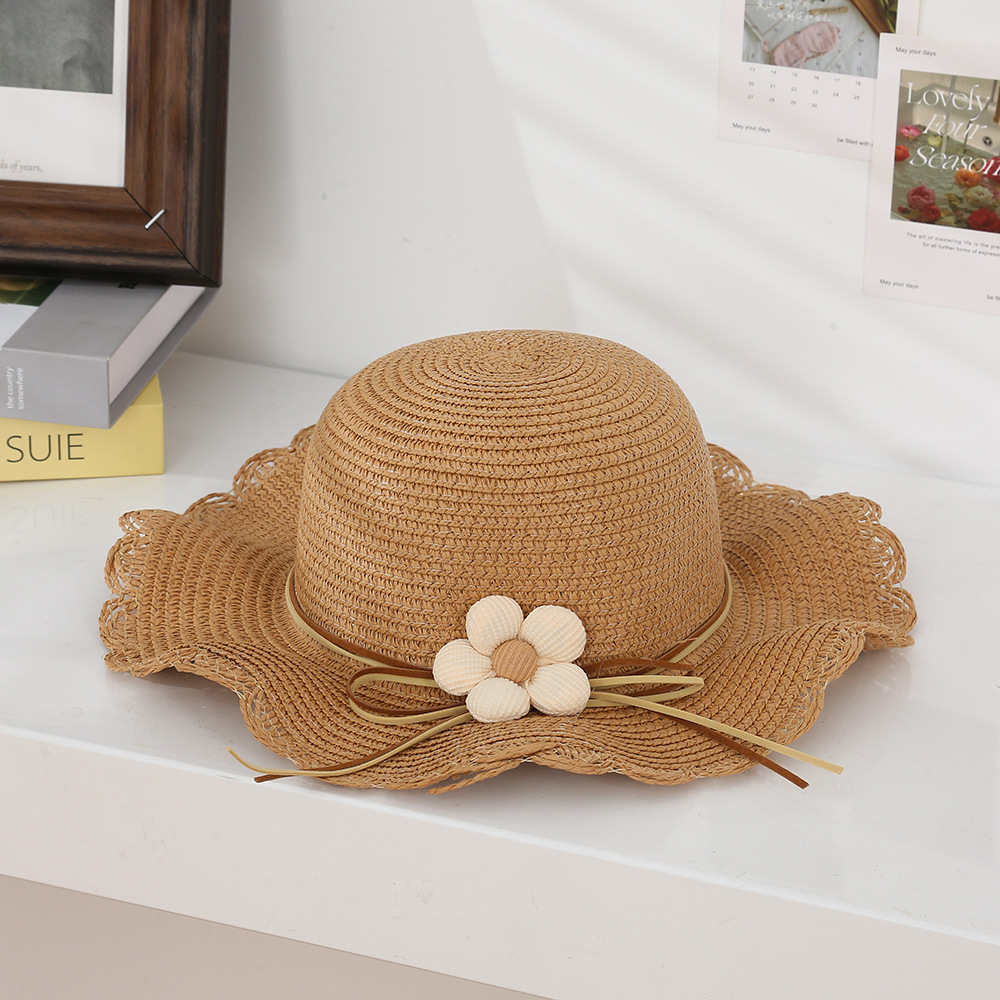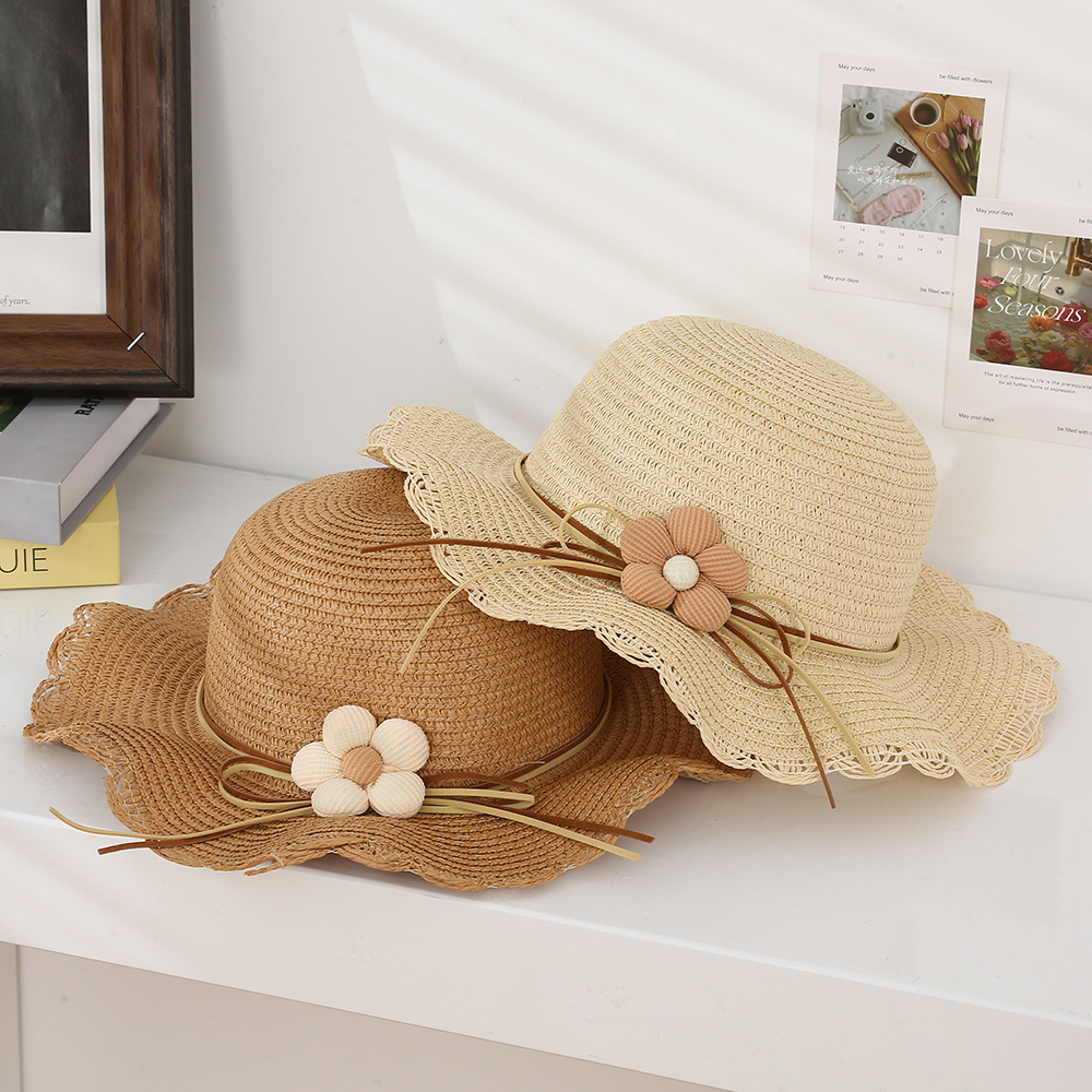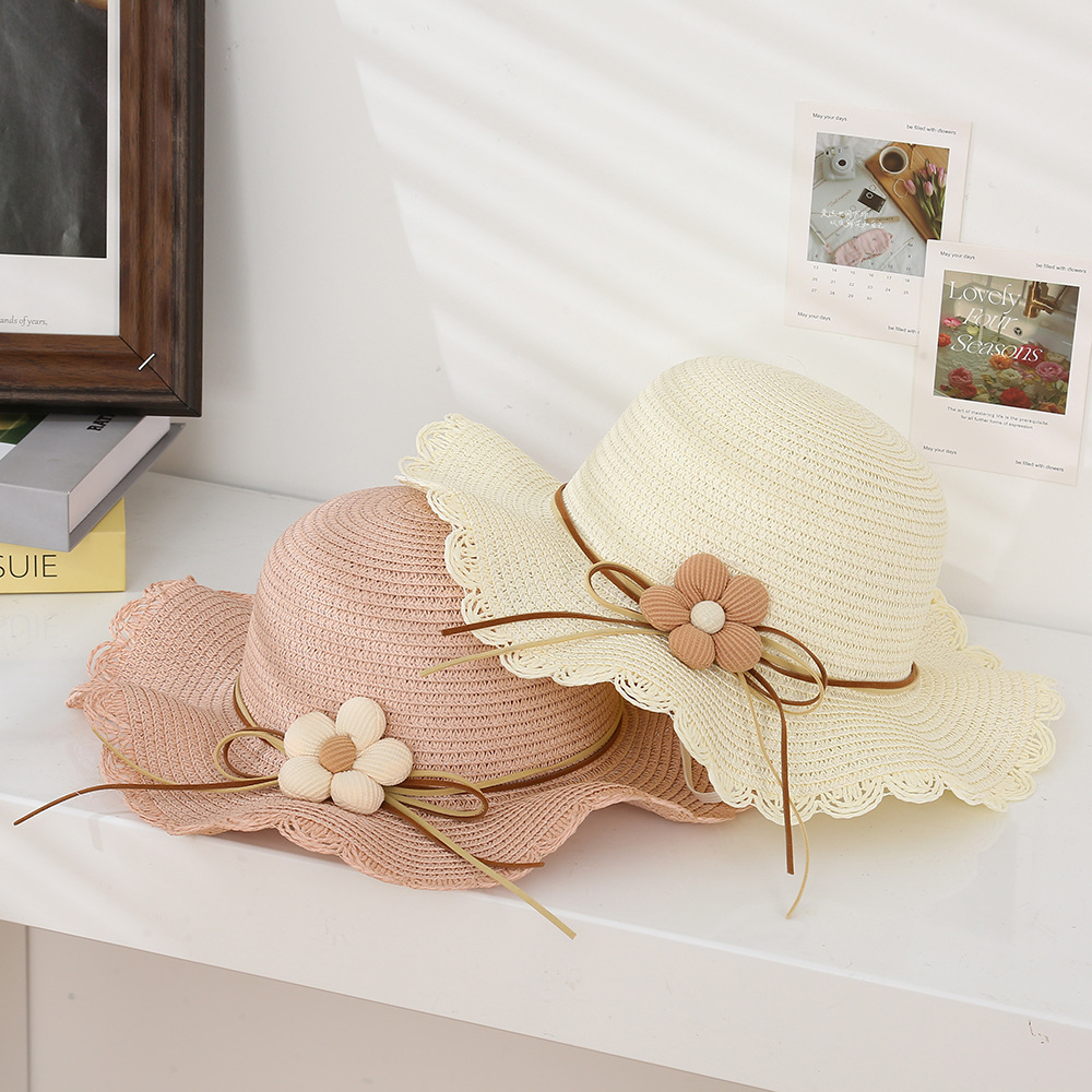 夏季新款儿童小花朵草帽女户外出游遮阳帽网红时尚沙滩太阳帽