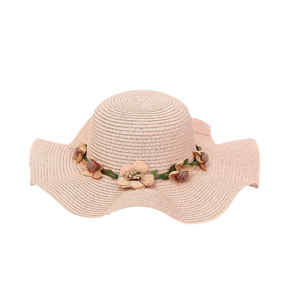 夏季海边度假花环草帽小清新甜美沙滩帽户外遮阳帽防晒帽女士