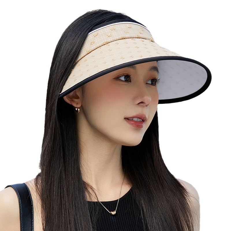 网红大帽檐空顶帽女夏季户外太阳帽无顶扎马尾防晒帽骑行遮阳帽