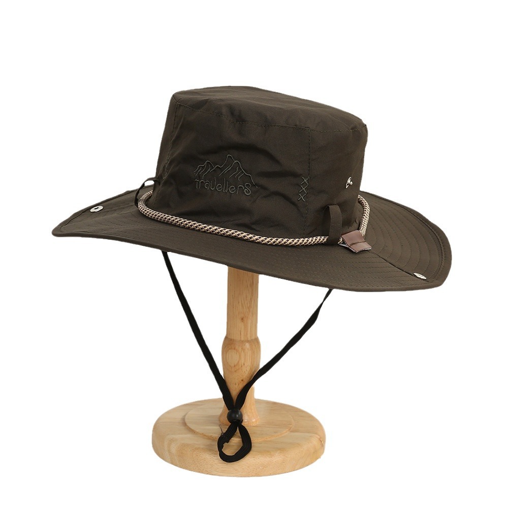 夏季户外爬山登山帽男女同款新款系绳翻边牛仔帽骑行钓鱼遮阳帽
