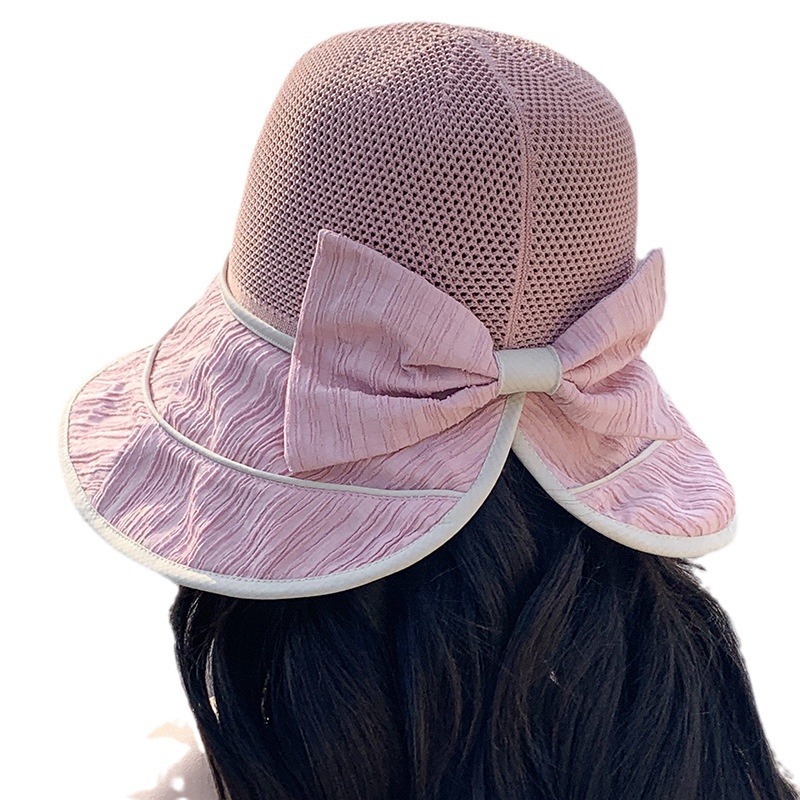 夏天遮阳渔夫帽女新款甜美大帽檐太阳帽素颜遮脸蝴蝶结帽子