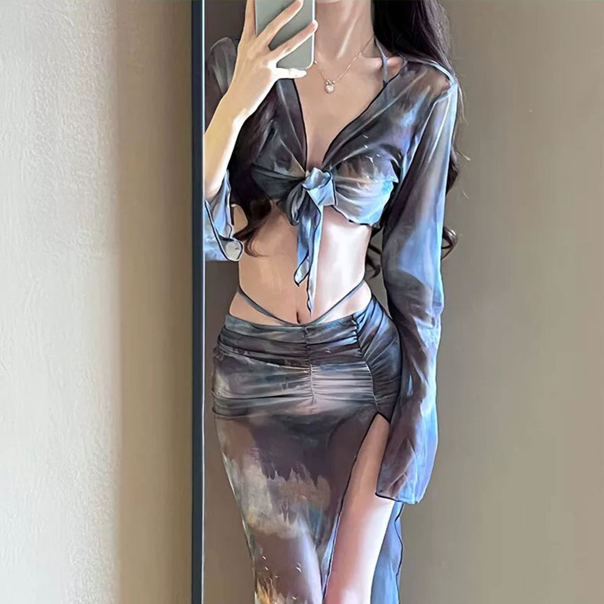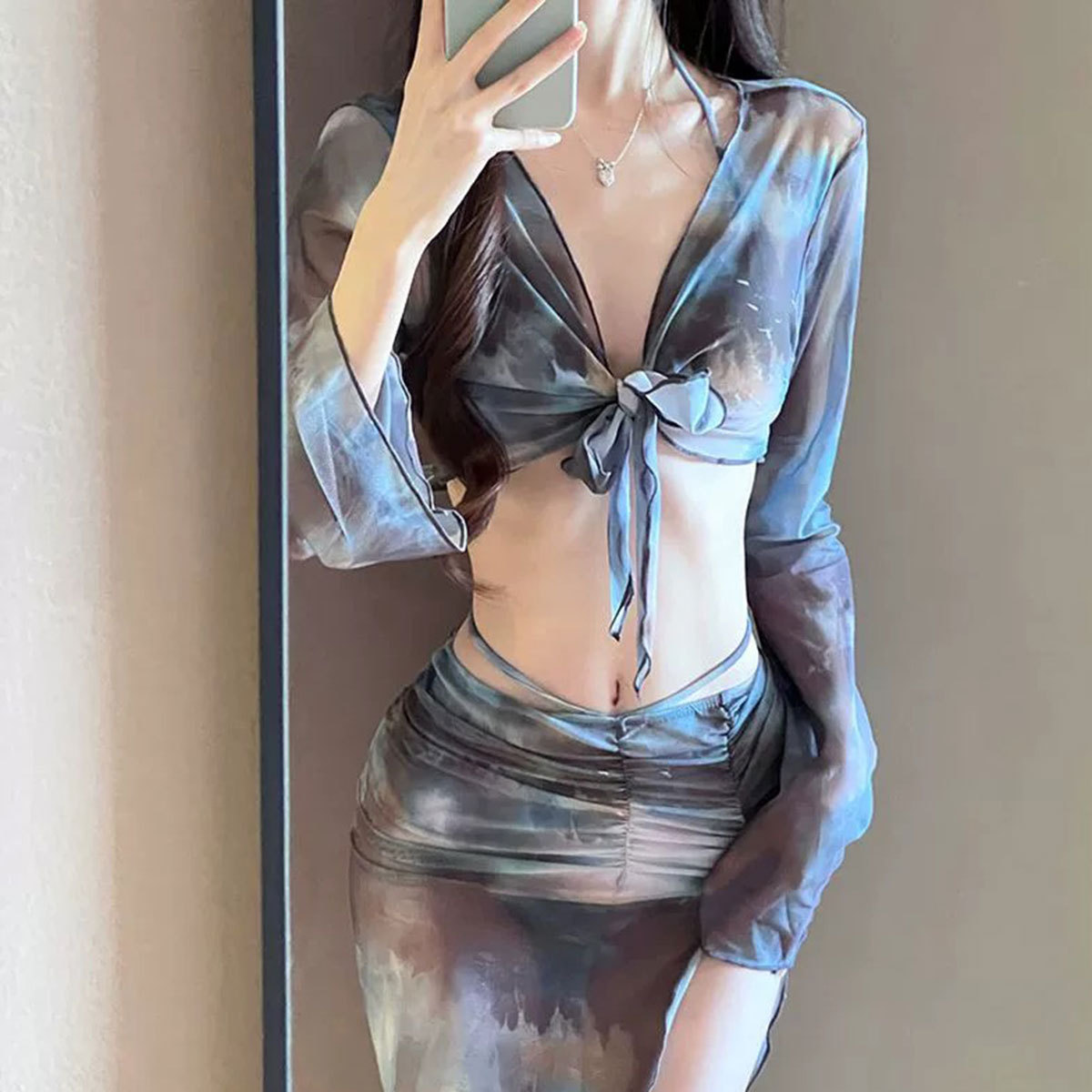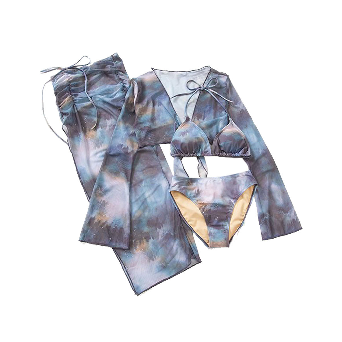 泳衣女分体比基尼四件套长裙性感欧美修身显瘦度假泡温泉新款