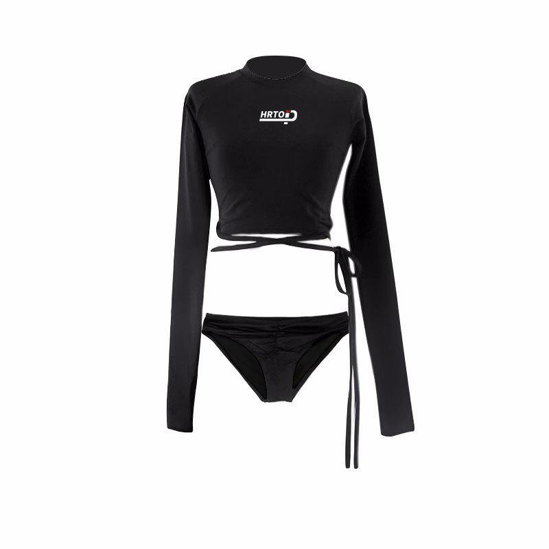 泳衣女绑带分体比基尼长袖防晒小高领性感显瘦小胸聚拢三角游泳装