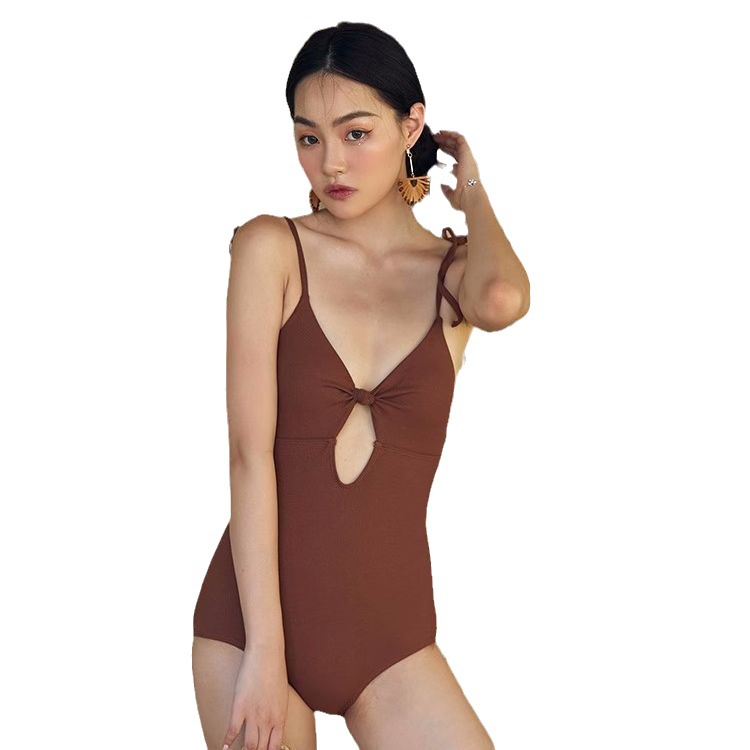 辣妹游泳衣女夏连体性感绑带显瘦遮肚三角温泉度假纯色跨境比基尼