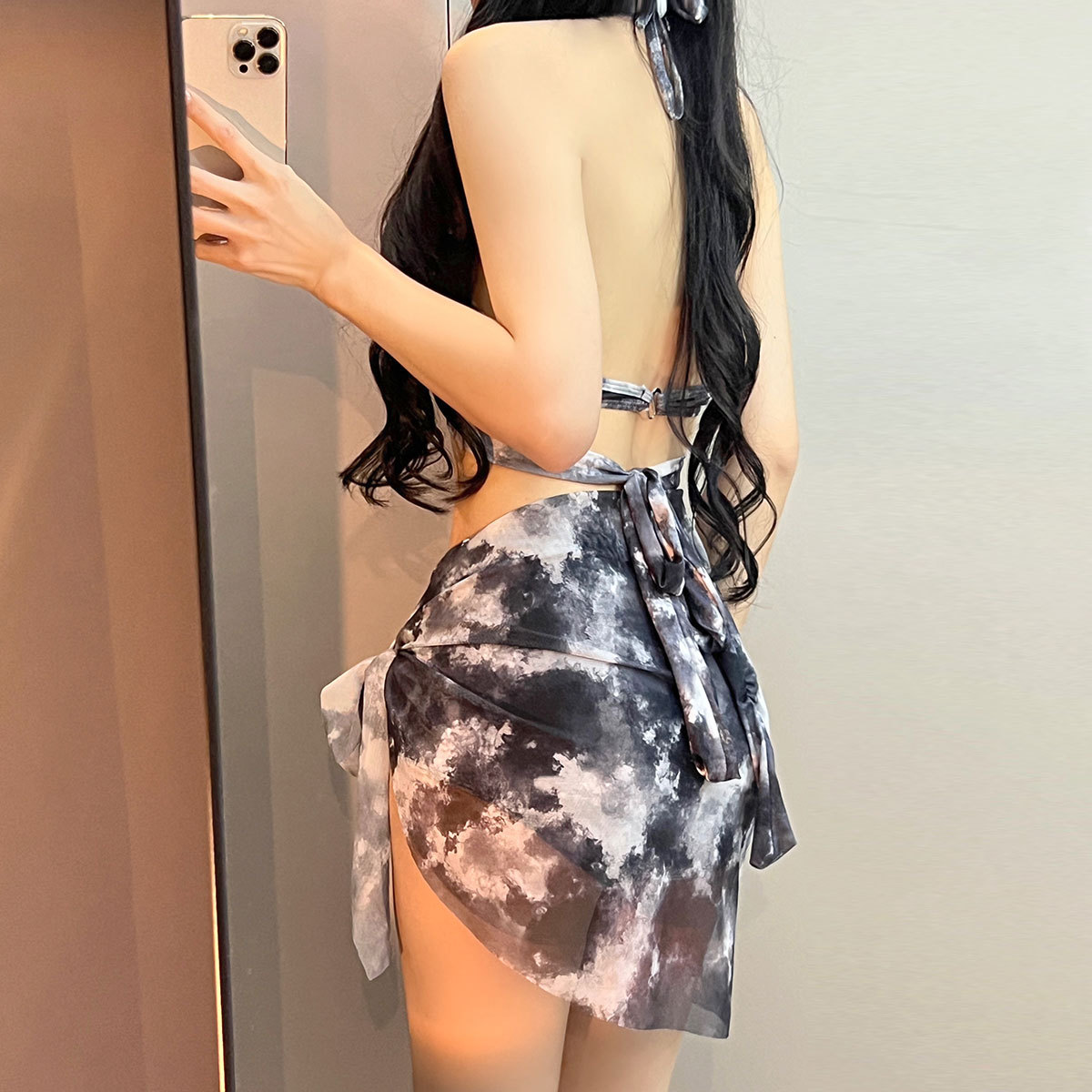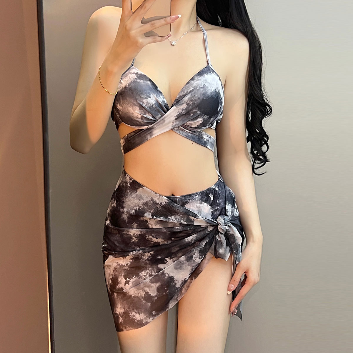 泳衣女纯欲风性感温泉辣妹小胸扎染高腰三件套比基尼游泳衣