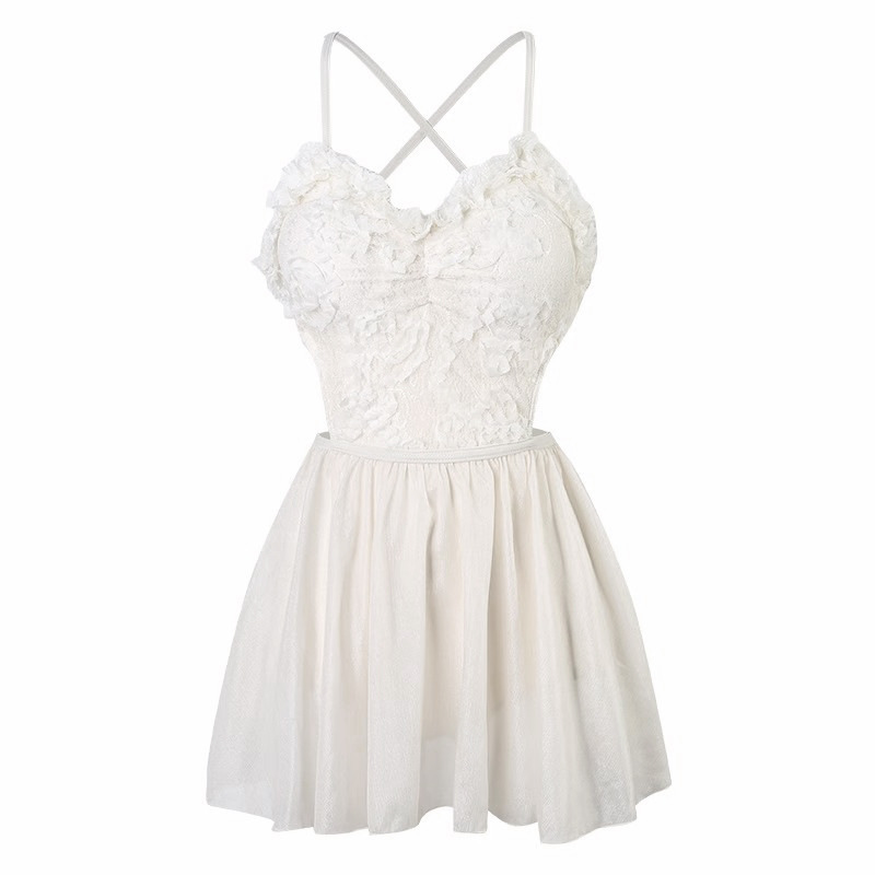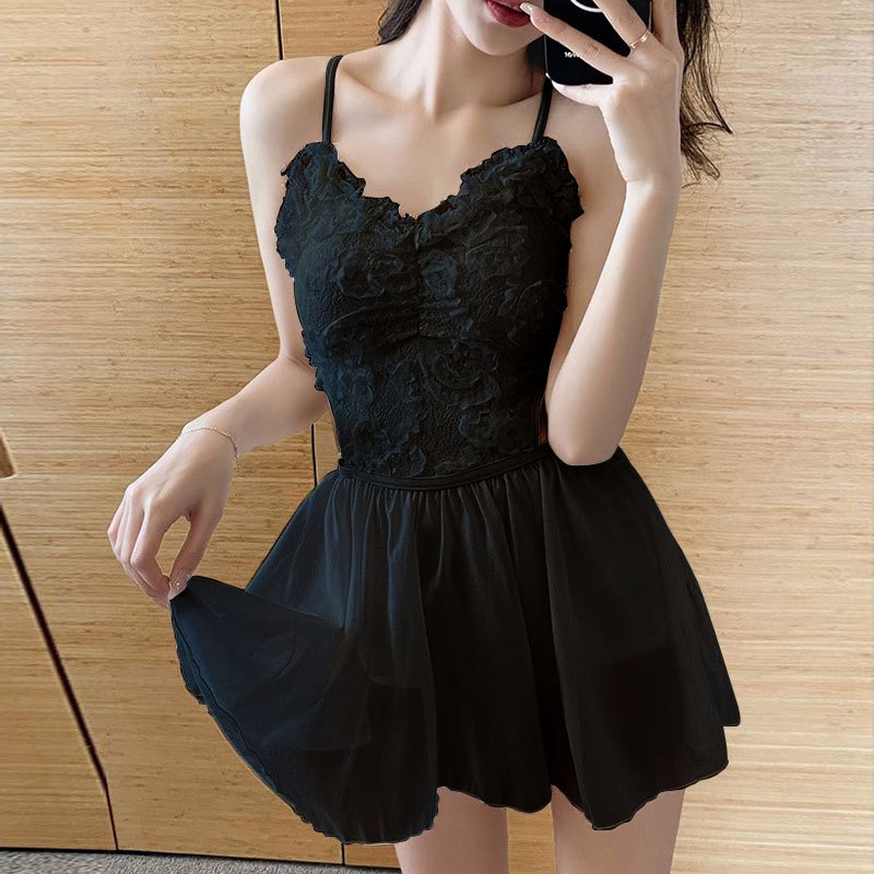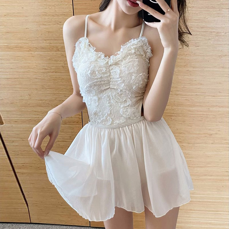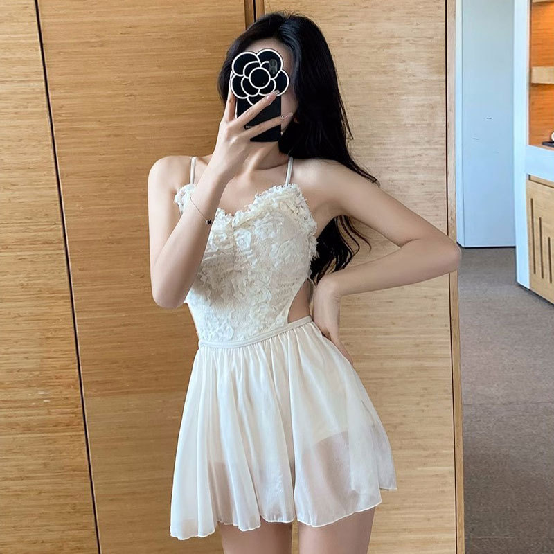 网红风轻奢感白色蕾丝吊带显瘦裙式连体泳衣女款夏仙遮肉性感遮肚