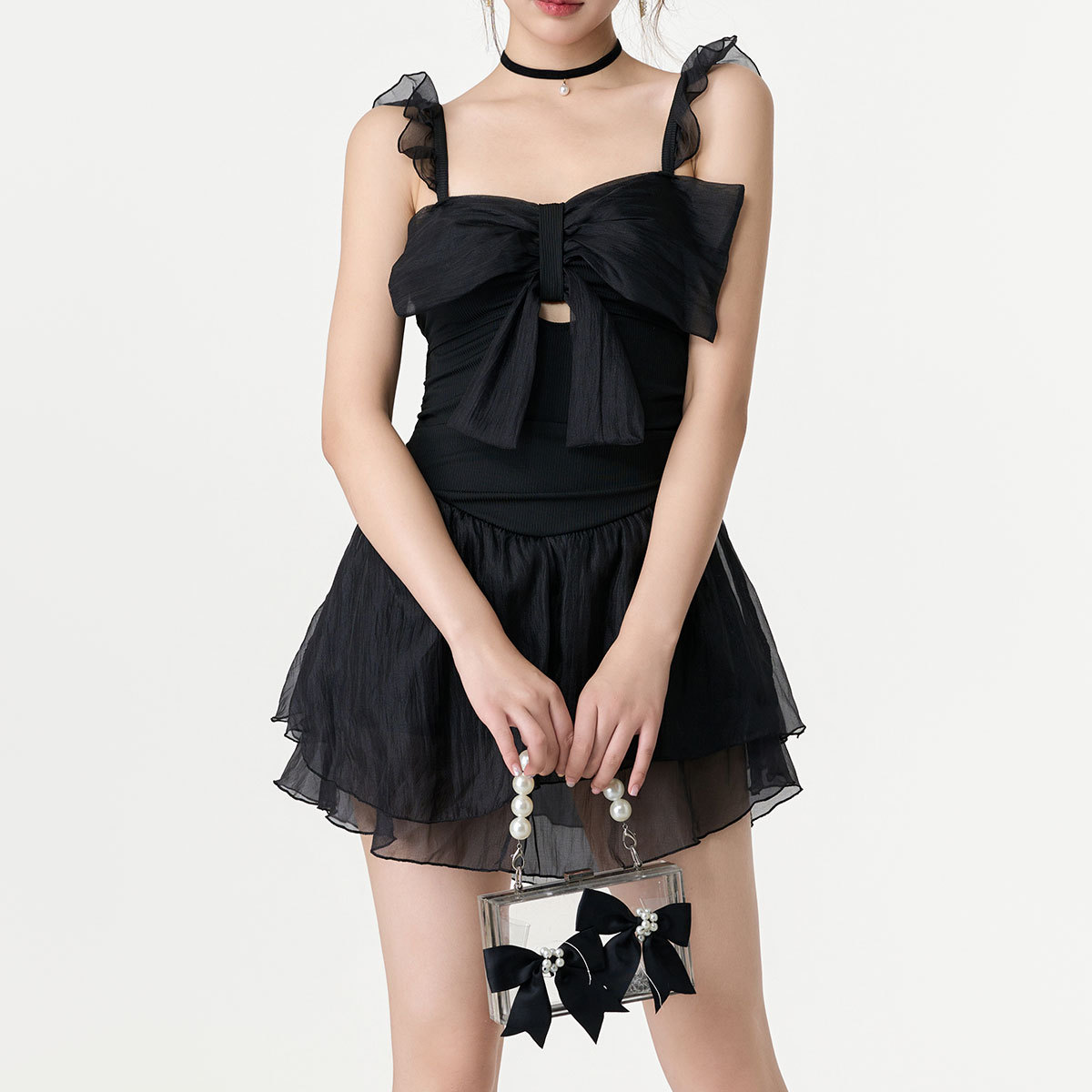 黑色纯欲内搭不规则碎花裙吊带裙连衣裙女气质收腰显瘦短款裙