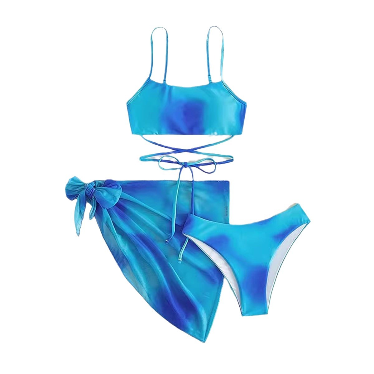 泳衣bkini欧美跨境扎染系带性感比基尼三件套女