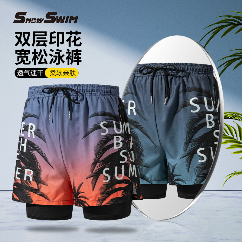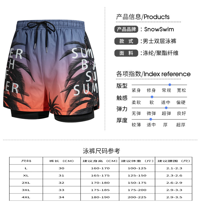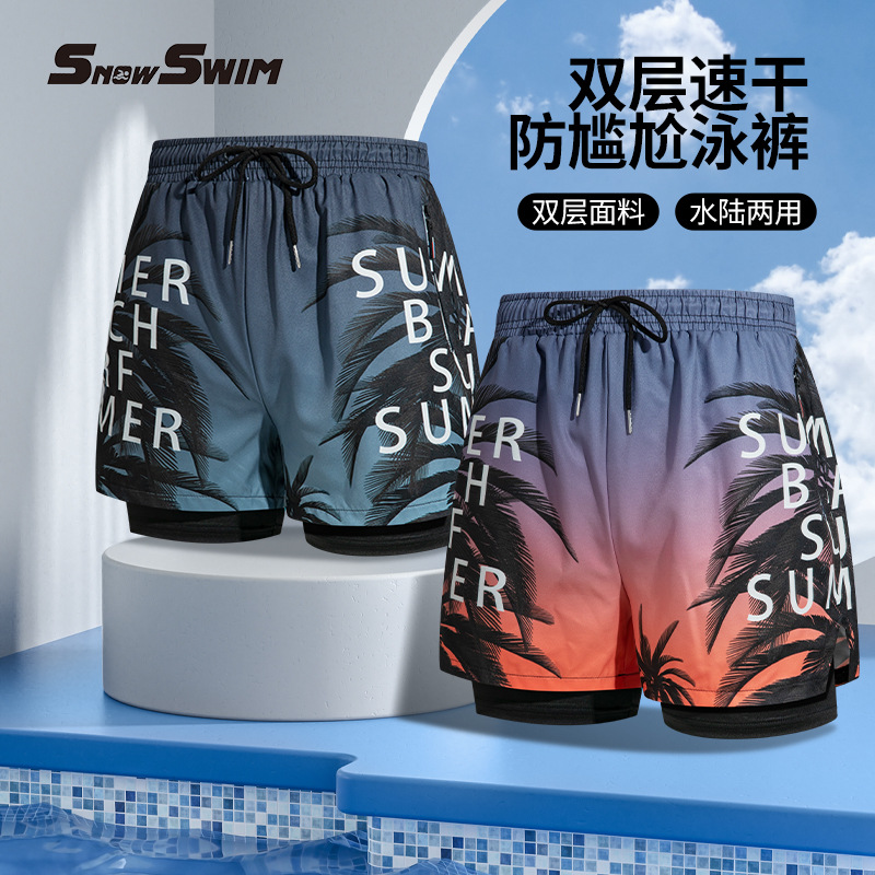 双层带拉链泳裤男士平角五分泳衣裤防尴尬专业沙滩裤成人游泳装备
