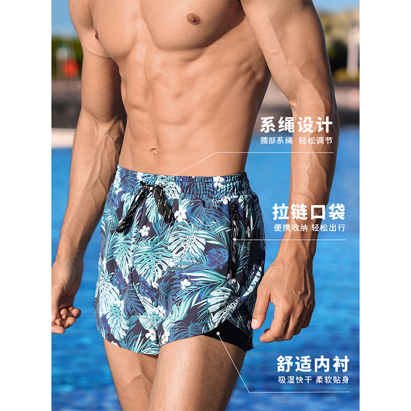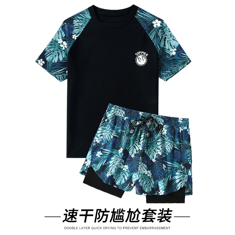 泳裤男防尴尬宽松速干男士游泳裤平角泳衣套装沙滩裤温泉游泳装备