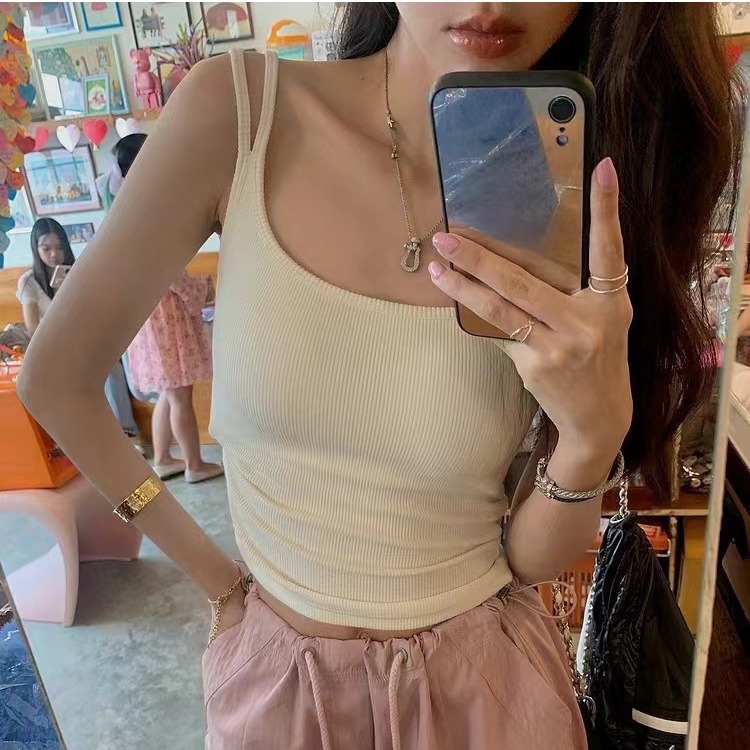 新款糖果色系夏季吊带背心女带胸垫螺纹棉修身百搭外穿美背女上衣