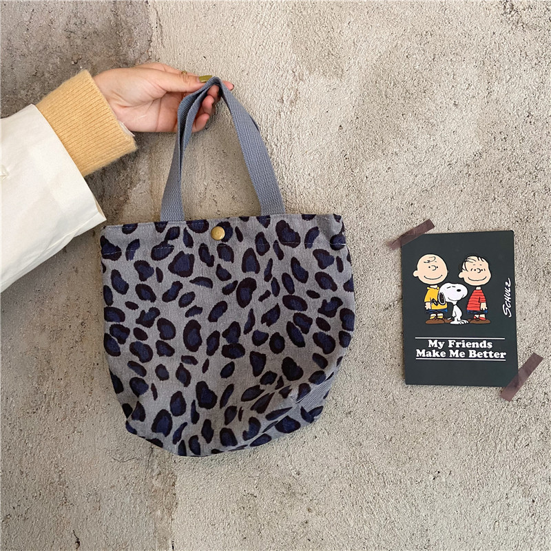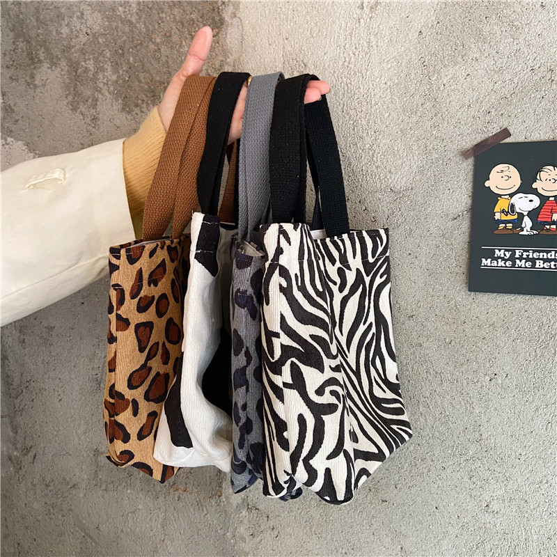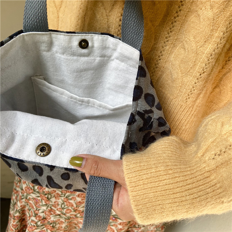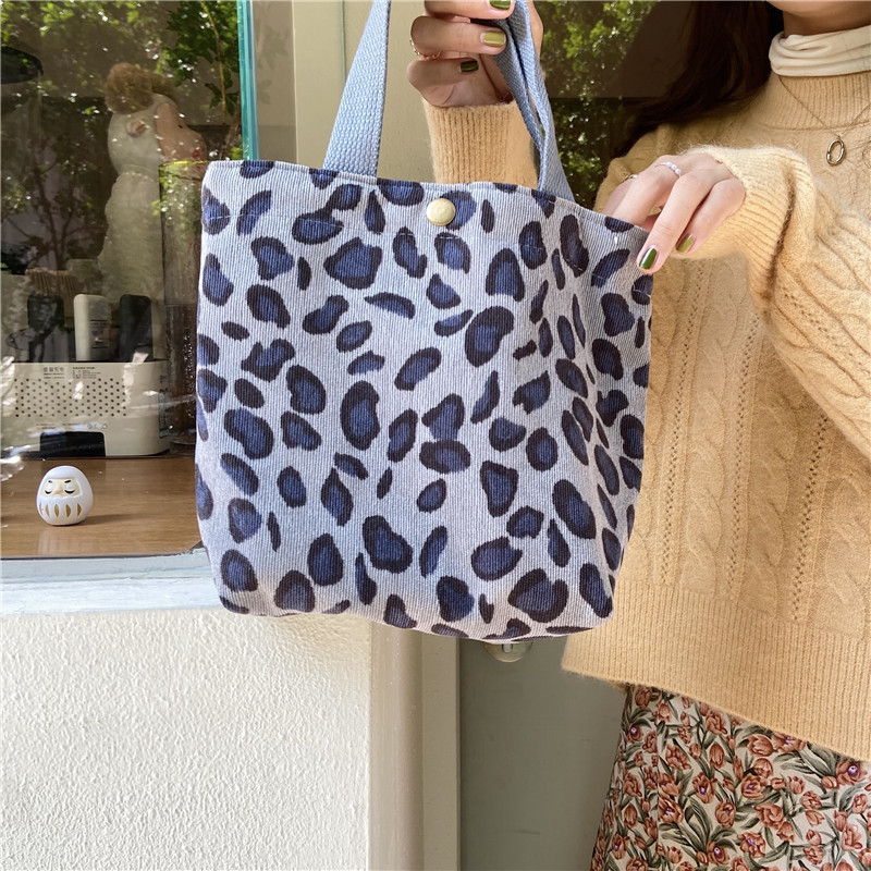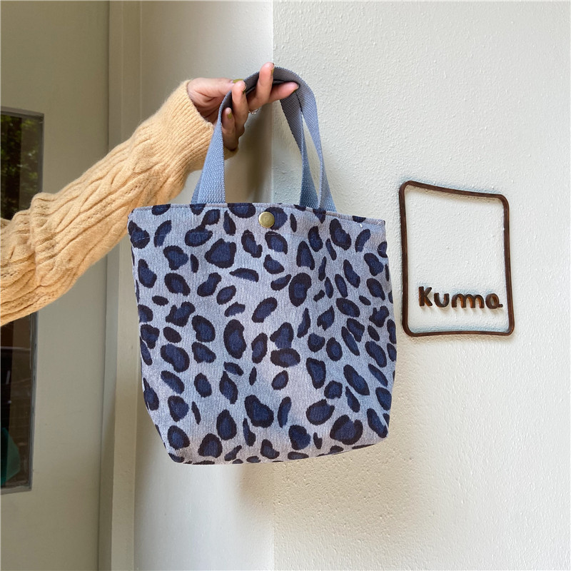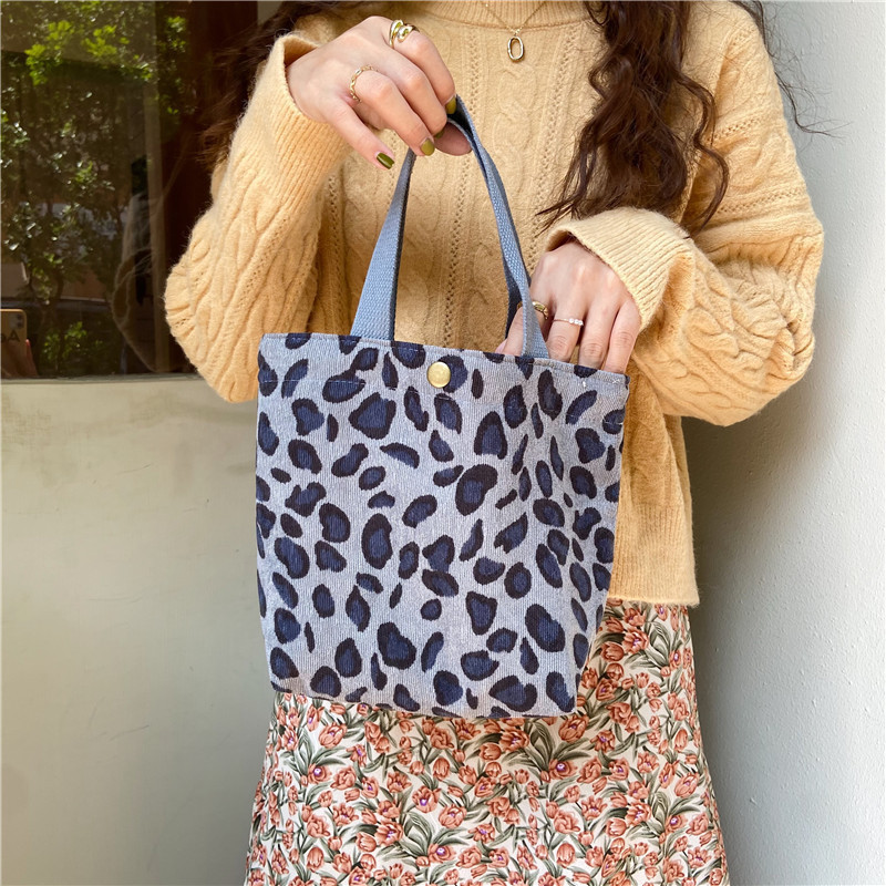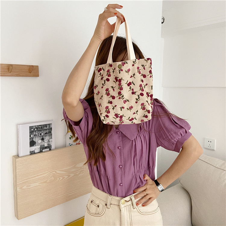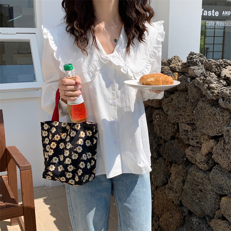 文艺灯芯绒午餐饭盒便当包可爱雏菊印花手拎手提收纳袋手拿
