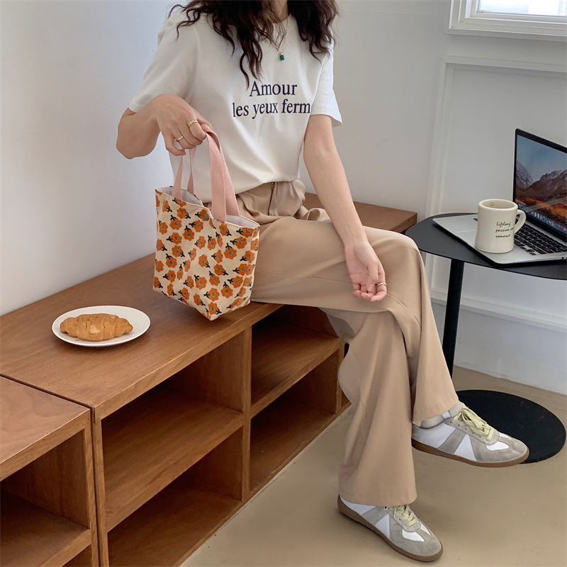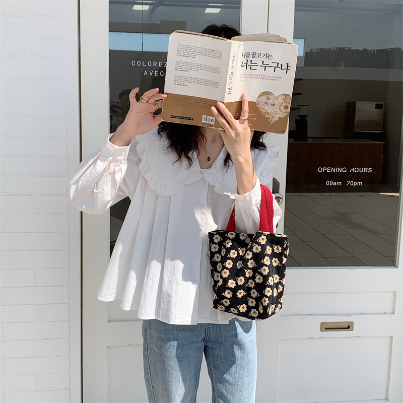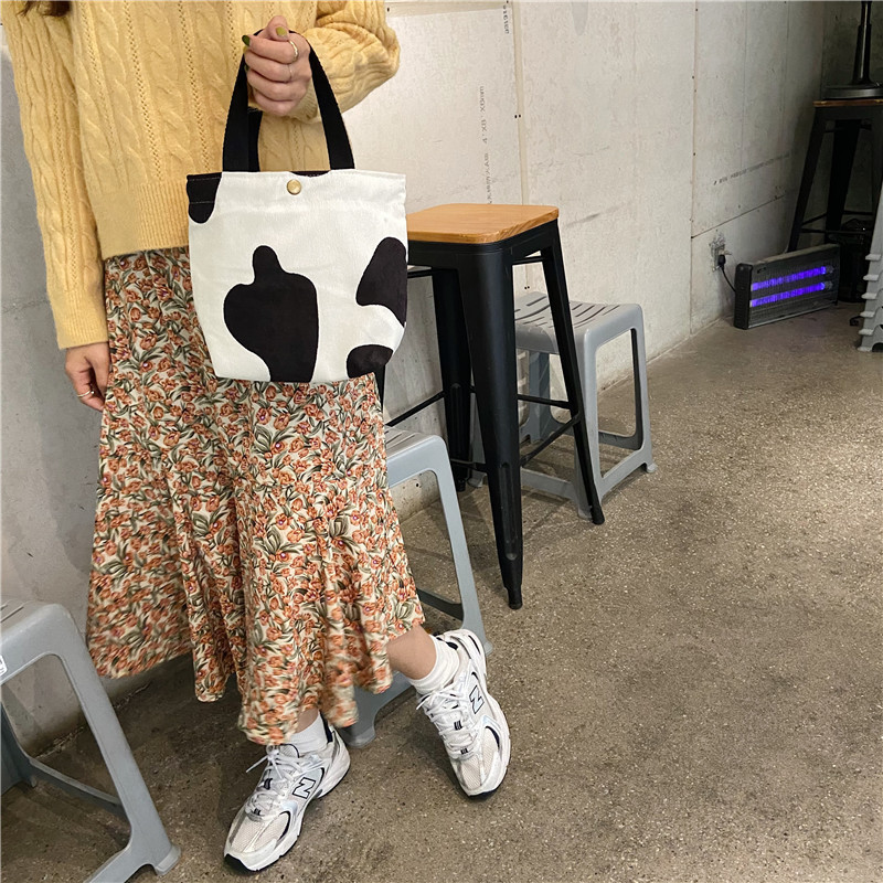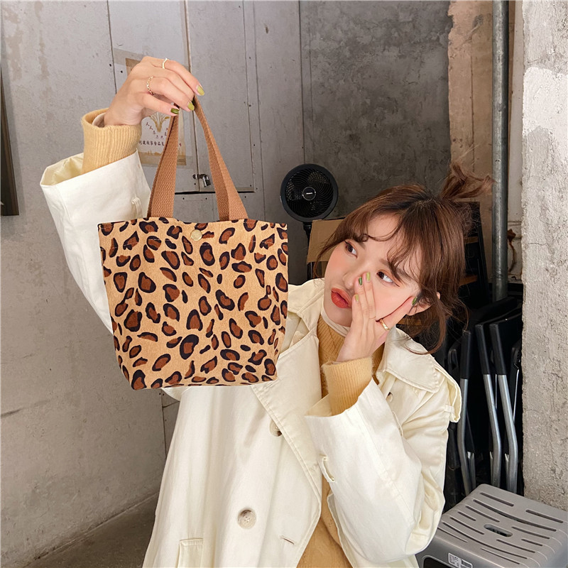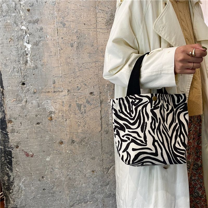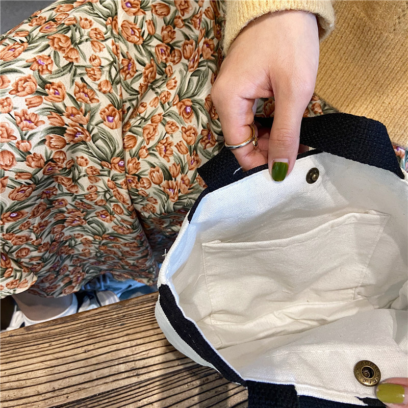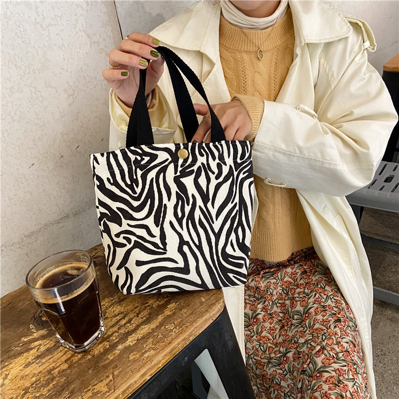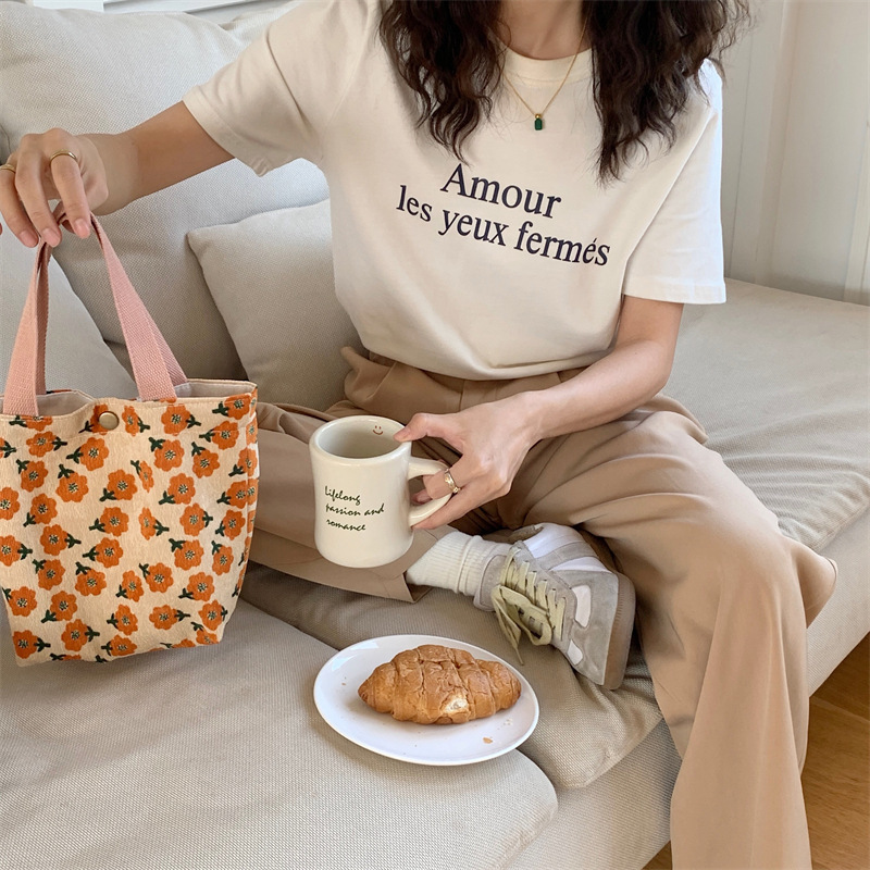 文艺灯芯绒午餐饭盒便当包可爱雏菊印花手拎手提收纳袋手拿