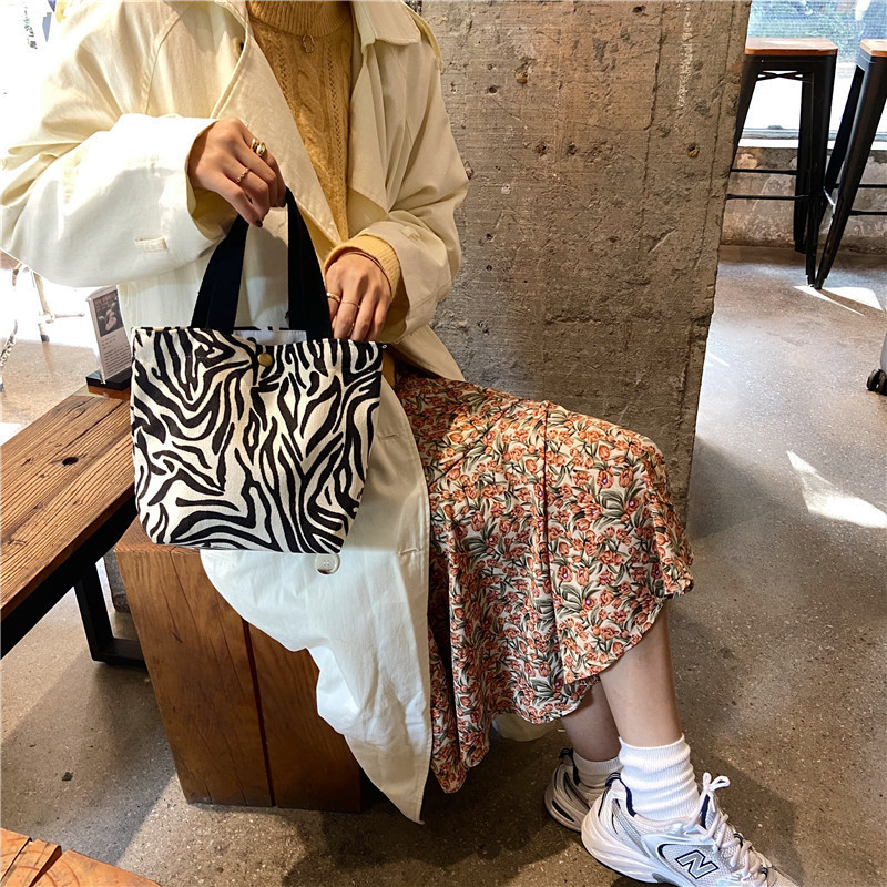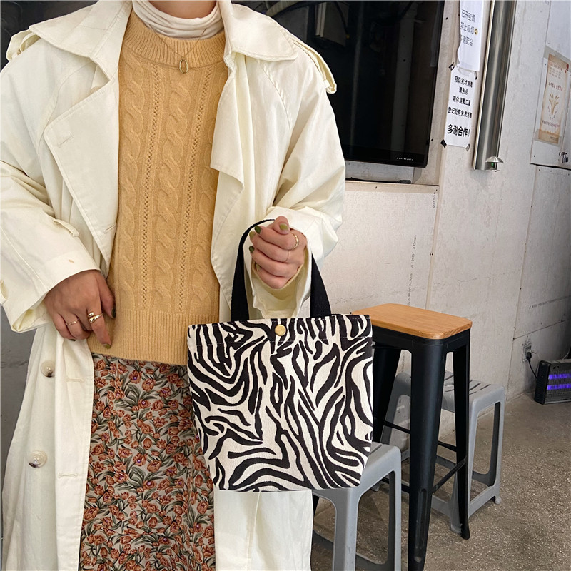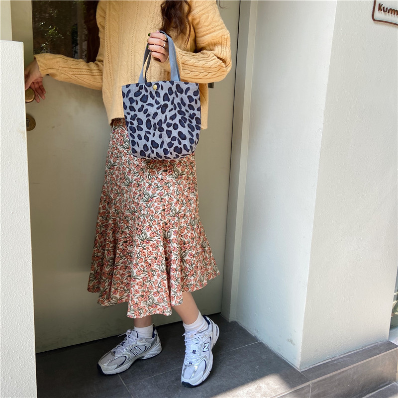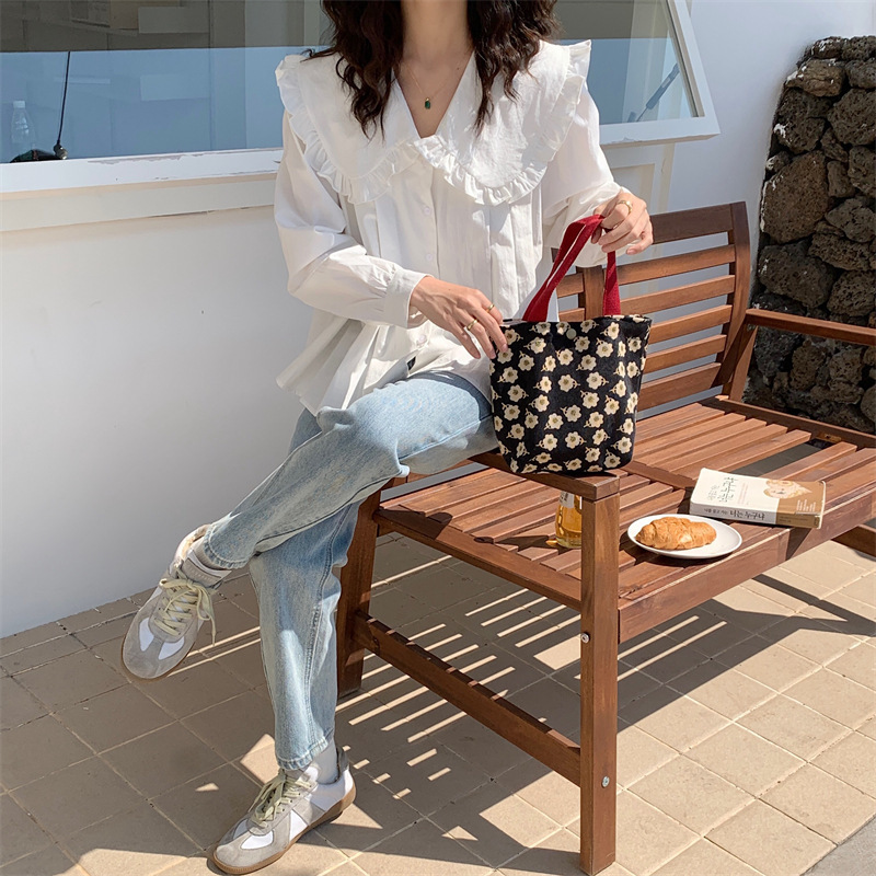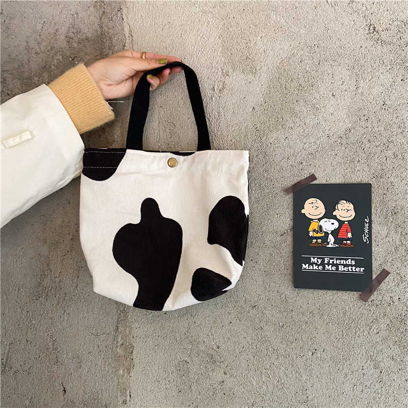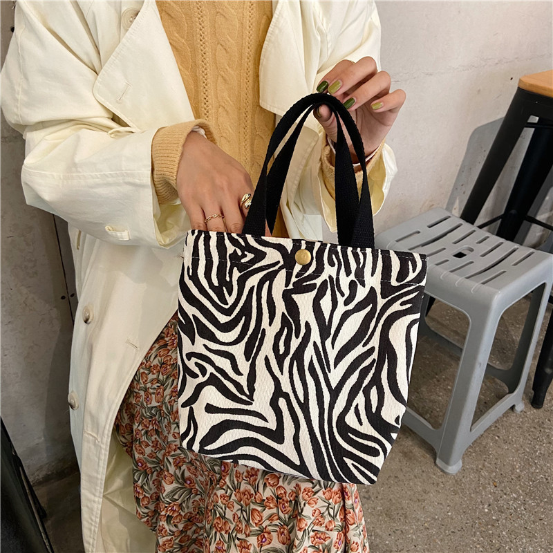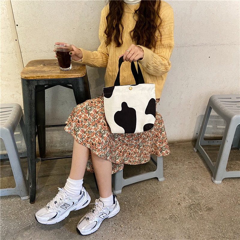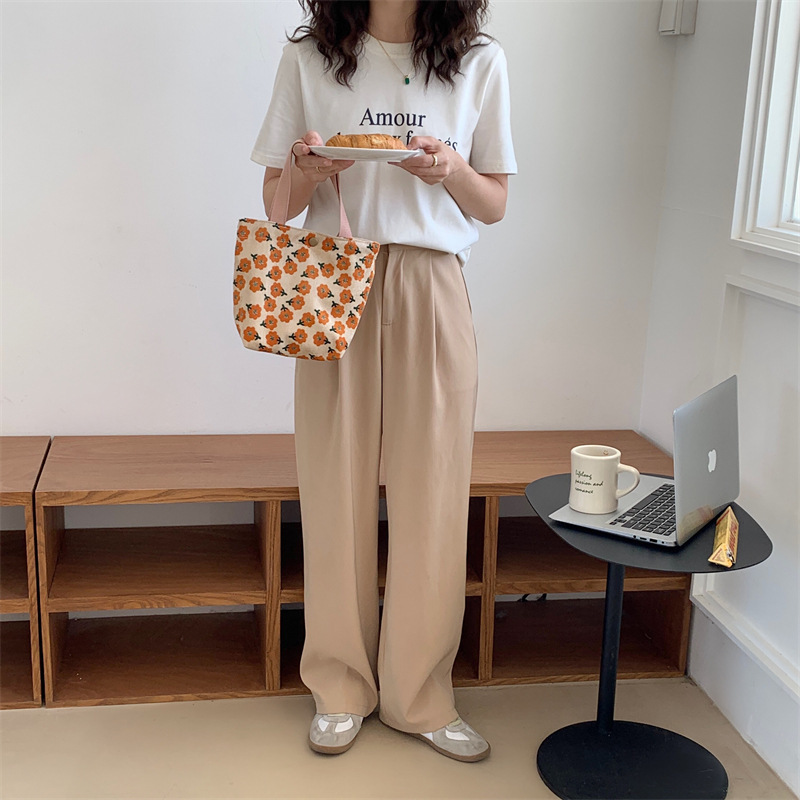 文艺灯芯绒午餐饭盒便当包可爱雏菊印花手拎手提收纳袋手拿